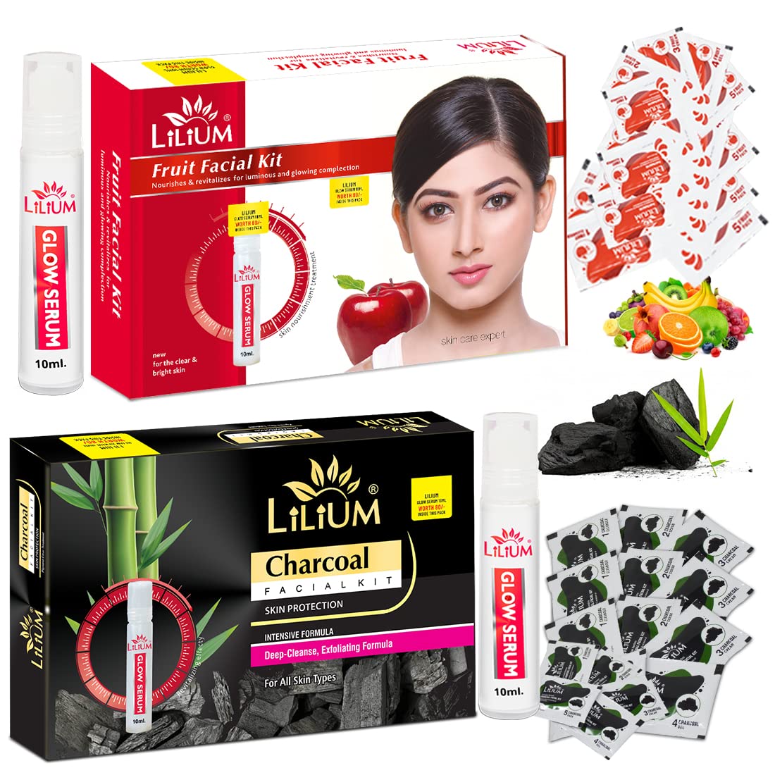 Lilium Charcoal & Fruit Facial Kit Pack of 2 for Luminous Glowing Complection & Nourishes & Revitalizer 120g