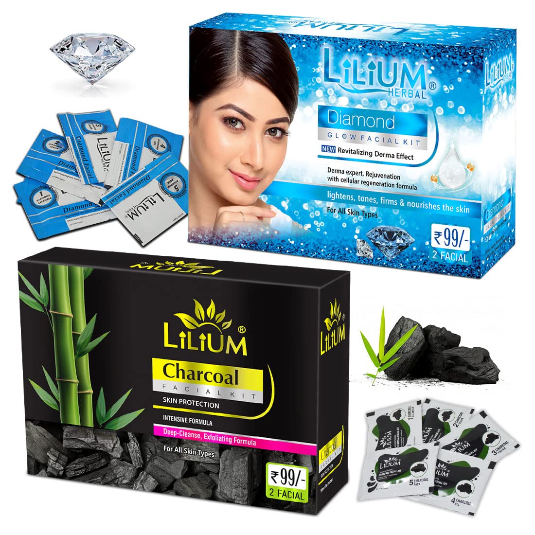 Lilium Diamond & Charcoal Facial Kit Pack of 2 For Nourishes the skin & Exfoliating 60g