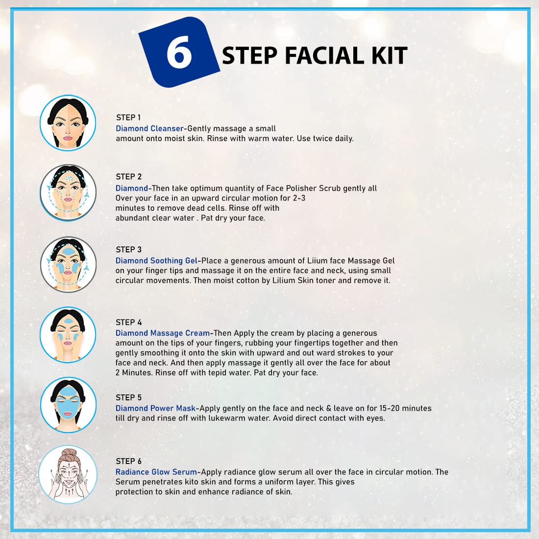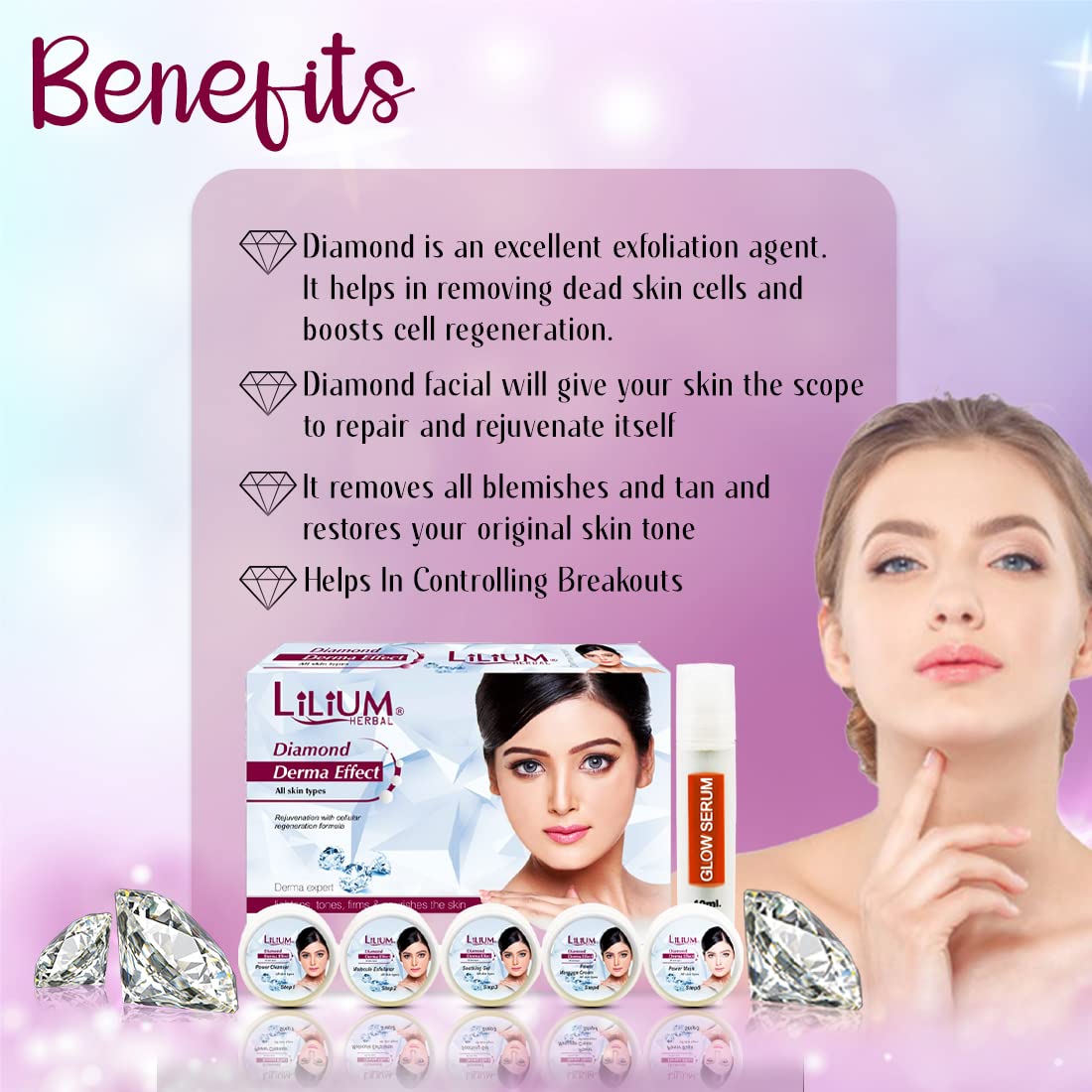 LILIUM DIAMOND POWER CLEANSER: This formula have natural ingredients to supply a maintain essential moisture content of our skin. Nourishes the skin and calcium absorbs excess of oil present in pores. || LILIUM DIAMOND MOLECULE EXFOLIATOR: This is a formu