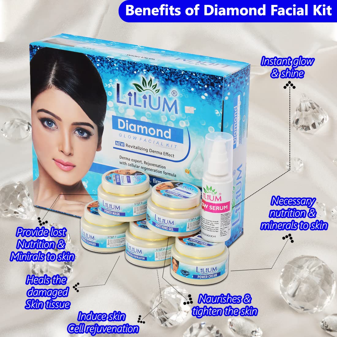 Lilium Diamond Glow New Revitalizing Derma EffectDerma ExpertRejuvenation With Cellular Regeneration Formula LightensTonesFirms & Nourishes The Skin For All Skin Types Facial Kit 350 GM