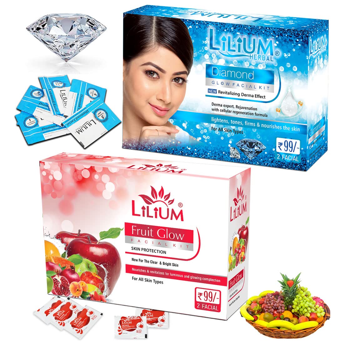 Lilium Fruit & Diamond Facial Kit Pack of 2 For Luminous Glowing Complexion & Nourishes The Skin 60g