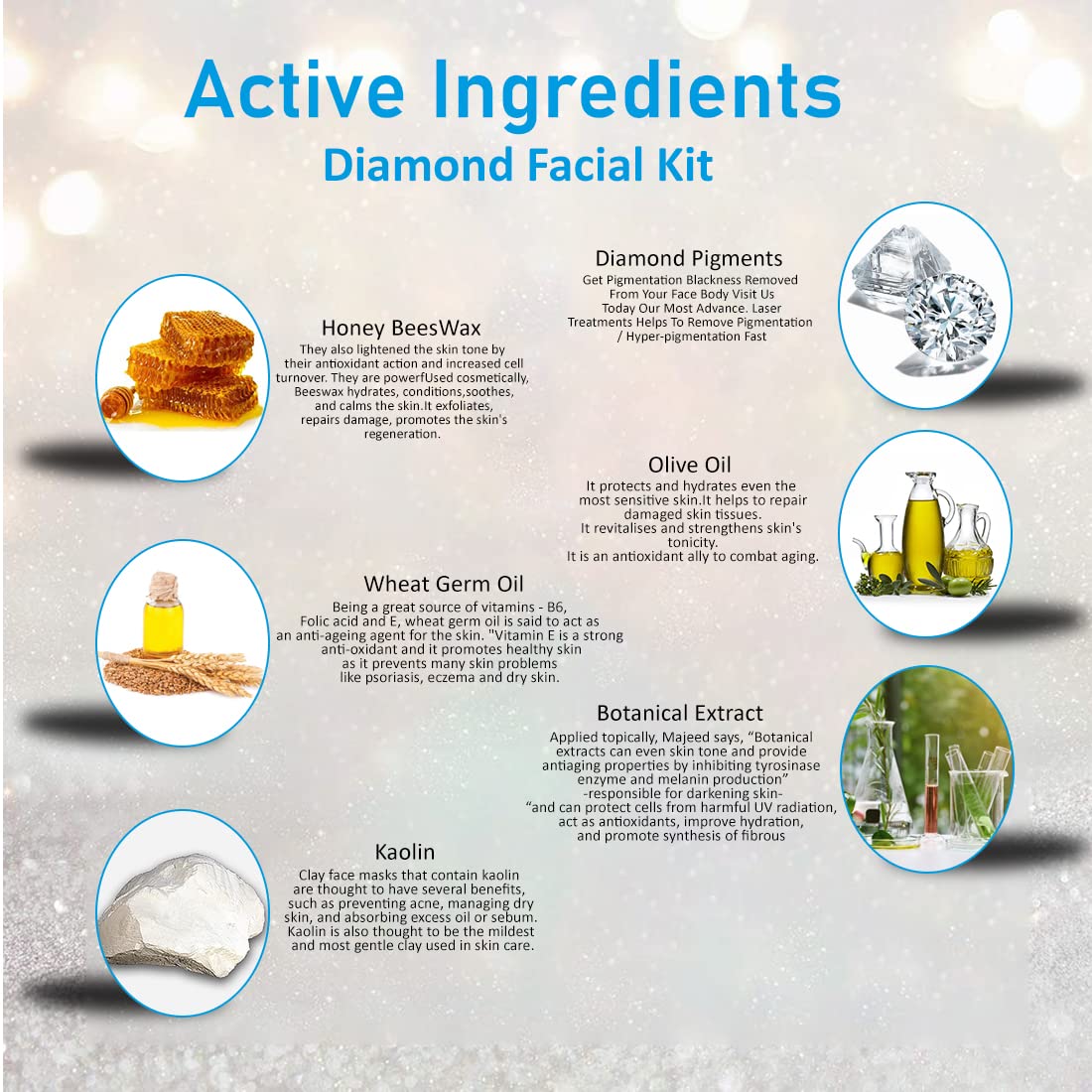 Buy this Product From The House Of Good Choice India on Amazon.in The Lilium Facial Kit" fortified with Actives is a complete "Do it yourself" Facial Kit that can be used at the comfort of your home. In today’s day and age exposure to Sun Pollution and Impurities in our surroundings leaves our skin dull dark and lifeless! Maintaining good skin health is the top most priority for all of us! This Facial Kit" helps tackle these skin concerns. Enriched with the concoction of Activated with natural ingredients that are fortified with Actives delivers maximum efficacy with skin rejuvenation benefits for a purified balanced and glowing skin! This kit is suitable for skin types.