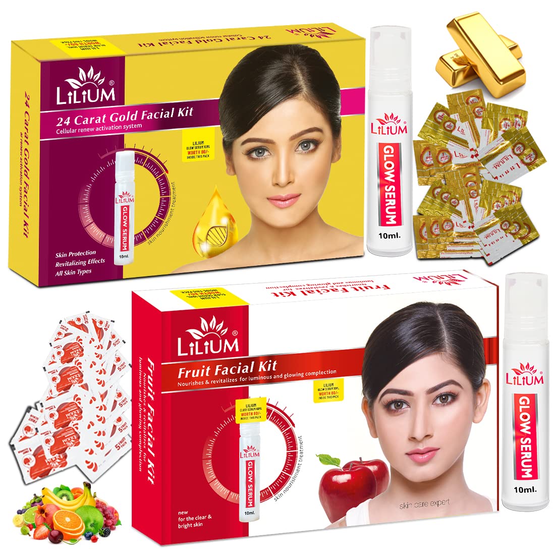 Buy this Product From The House Of Good Choice India on Amazon.in The Lilium Facial Kit" fortified with Actives is a complete "Do it yourself" Facial Kit that can be used at the comfort of your home. In today’s day and age exposure to Sun Pollution and Impurities in our surroundings leaves our skin dull dark and lifeless! Maintaining good skin health is the top most priority for all of us! This Facial Kit" helps tackle these skin concerns. Enriched with the concoction of Activated with natural ingredients that are fortified with Actives delivers maximum efficacy with skin rejuvenation benefits for a purified balanced and glowing skin! This kit is suitable for skin types.