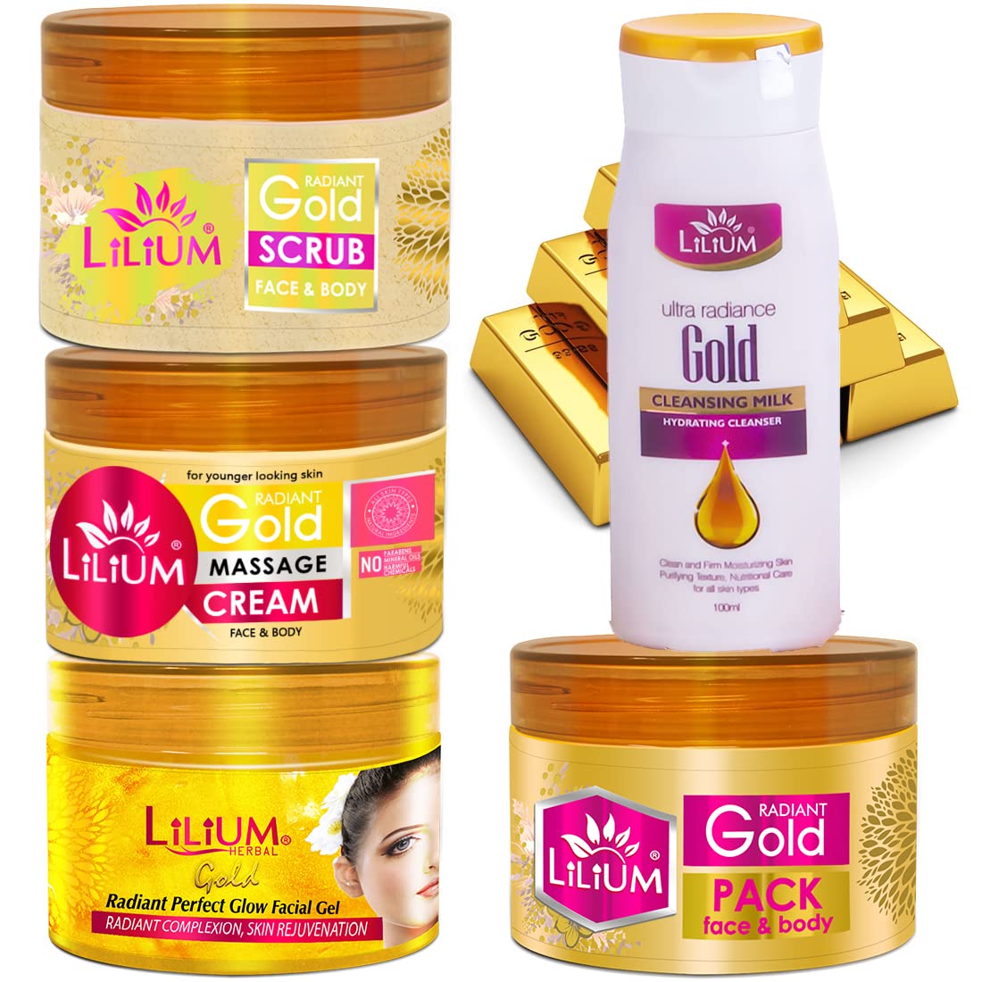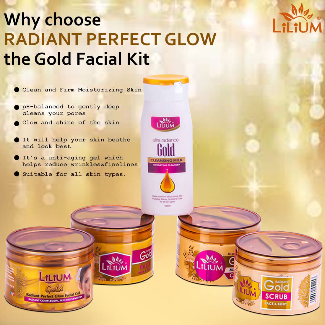 Lilium Gold Facial Kit 1100g | Complete Skincare Set for a Timeless Glow & Youthful Vitality | Anti-Aging & Skin Brightening | For Women & Men | 100% Vegan & Chemicals Free | All Skin Types