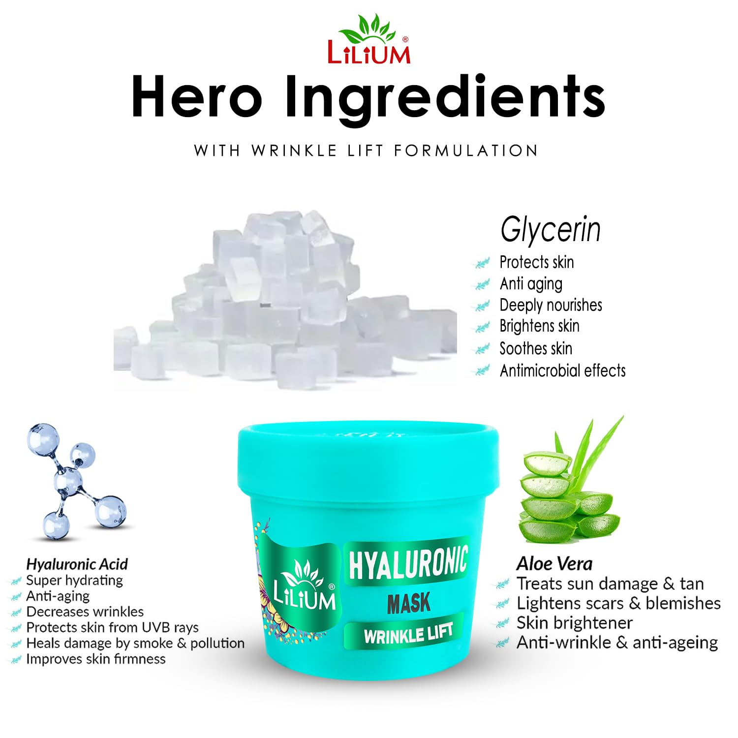 Replenish and Renew: Our Hyaluronic Facial Kit Harnesses the Power of Natural Ingredients for Luxurious Skin Our Hyaluronic Facial Kit is meticulously curated with a harmonious blend of natural ingredients including: [1] Hyaluronic: A hydration marvel hyaluronic attracts and locks in moisture plumping the skin and diminishing the appearance of fine lines and wrinkles. [2] Aloe Vera: Renowned for its soothing properties aloe vera calms and nourishes the skin leaving it refreshed and revitalized. [3] Chamomile Extract: Gentle and anti-inflammatory chamomile extract helps soothe and even out the skin tone promoting a calm complexion. [4] Vitamin E: An antioxidant powerhouse vitamin E protects against free radicals supporting healthy radiant skin. [5] Jojoba Oil: Lightweight and easily absorbed jojoba oil balances the skin's natural oils while providing deep hydration. [6] Botanical Extracts: Infusions of botanical wonders like green tea or rosehip extract offer additional nourishment and rejuvenation. [7] Natural Exfoliants: Mild exfoliants gently buff away dull skin enhancing the efficacy of other ingredients for a radiant glow. [8] Essential Oils: Delicate blends of essential oils provide a sensory indulgence while offering benefits such as improved circulation and relaxation. Immerse yourself in the indulgent experience of our Hyaluronic Facial Kit a fusion of nature's finest ingredients that work synergistically to replenish renew and revitalize your skin. Elevate your skincare routine with this holistic approach for a truly pampering and transformative experience.