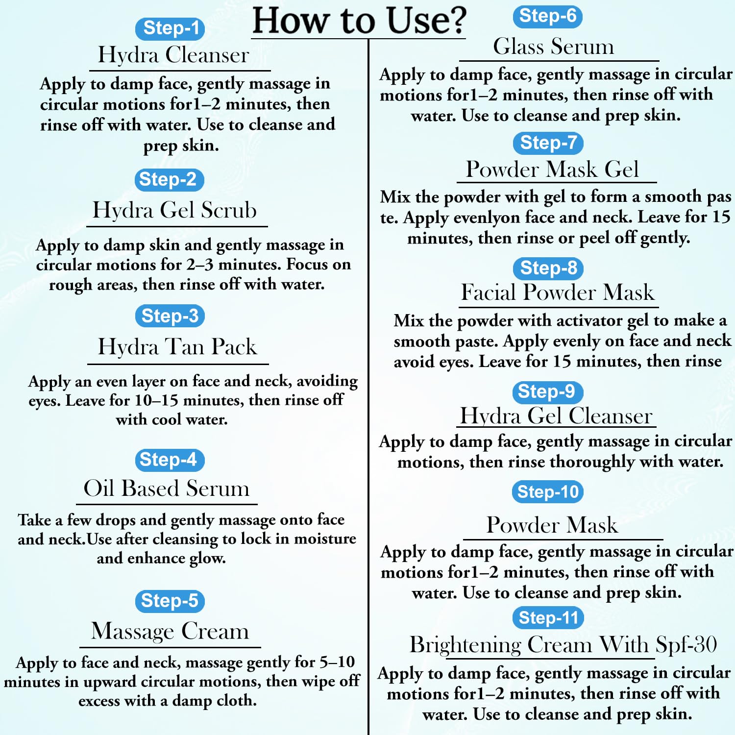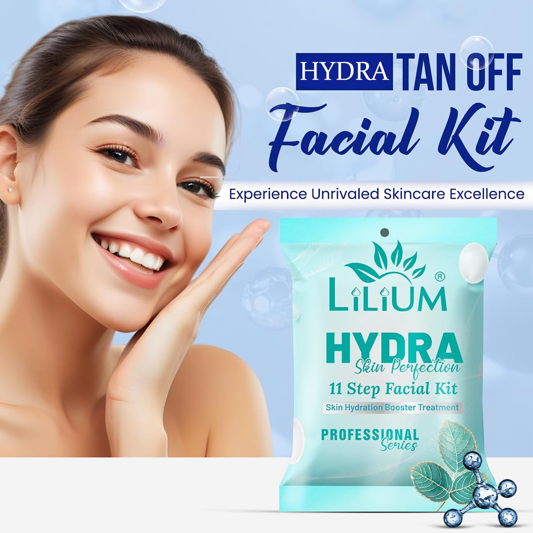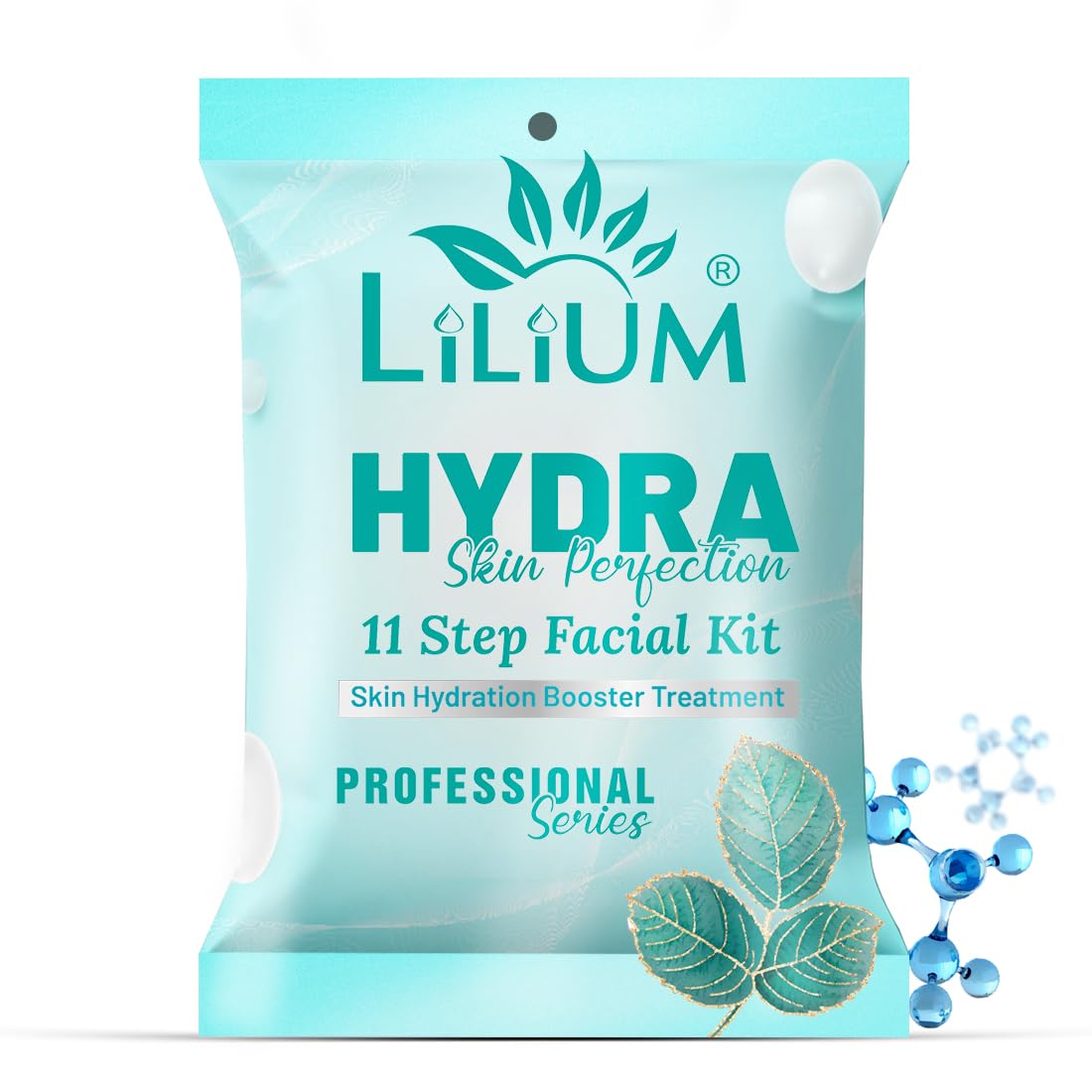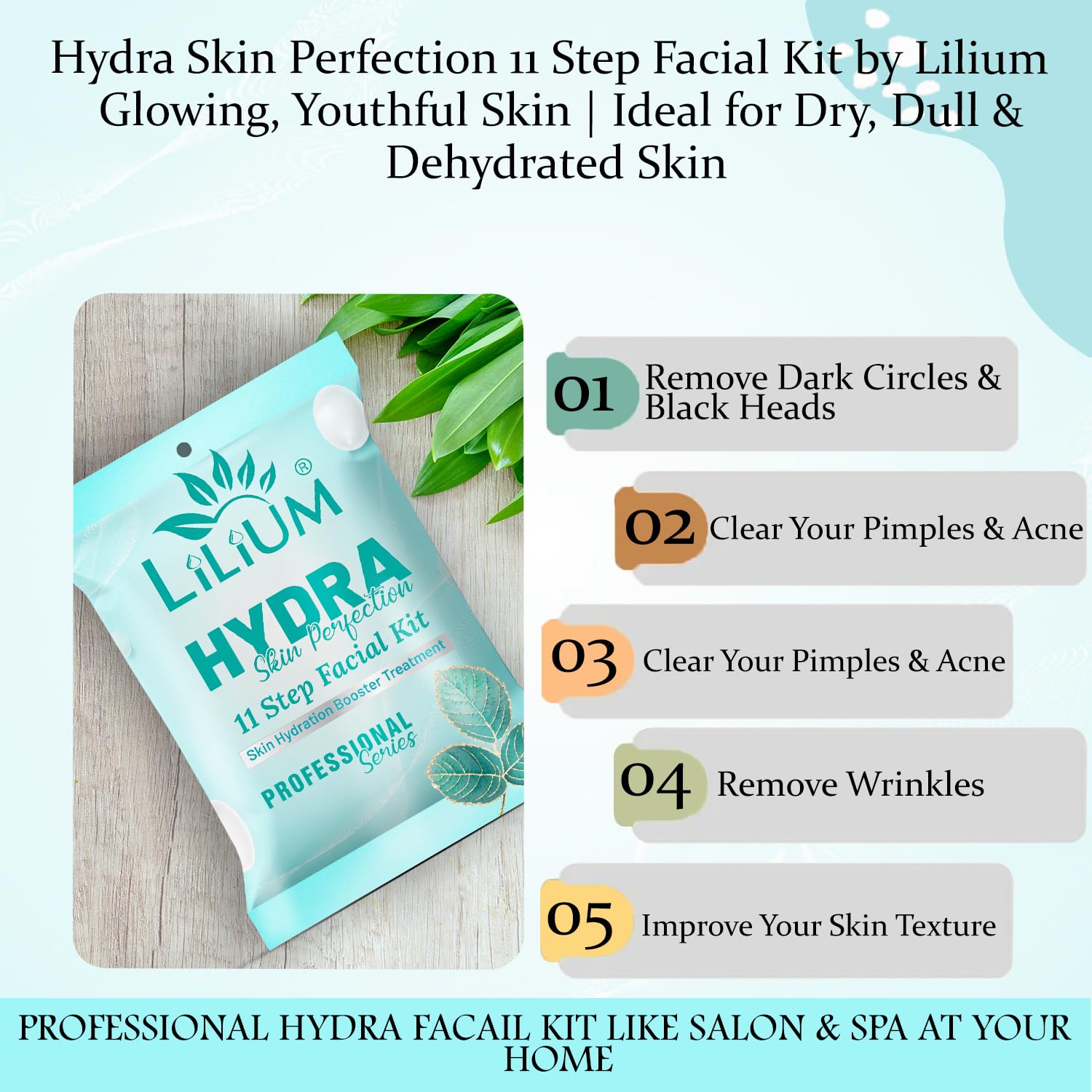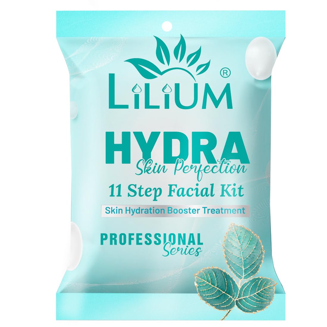 LILIUM Hydra Skin Perfection 11 Step Facial Kit for Women & Men | Skin Hydration Booster Treatment | With Aloe Vera Vitamin E & Hyaluronic Acid | All Skin Types | 91gm + 66ml