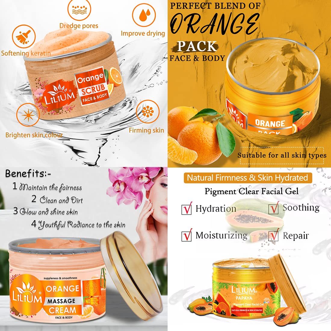 Lilium Orange Facial Kit 1100g | Complete Skincare Set With Power of Vitamin C | Makes Skin Brighter Rejuvenated & Youthful | For Women & Men | 100% Vegan & Chemicals Free | All Skin Types