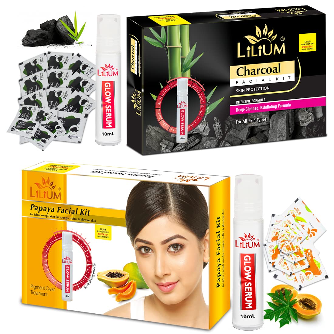Lilium Papaya & Charcoal Facial Kit Pack of 2 For Fairer Complexion & Exfoliating Formula 120g