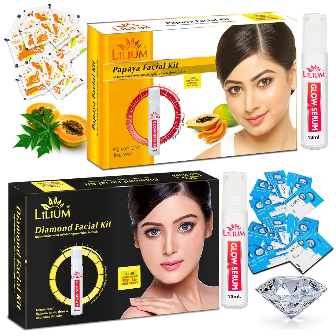 Lilium Papaya & diamond Facial Kit Pack of 2 For Fairer Complexion Glowing Skin & Nourishes The Skin 120g