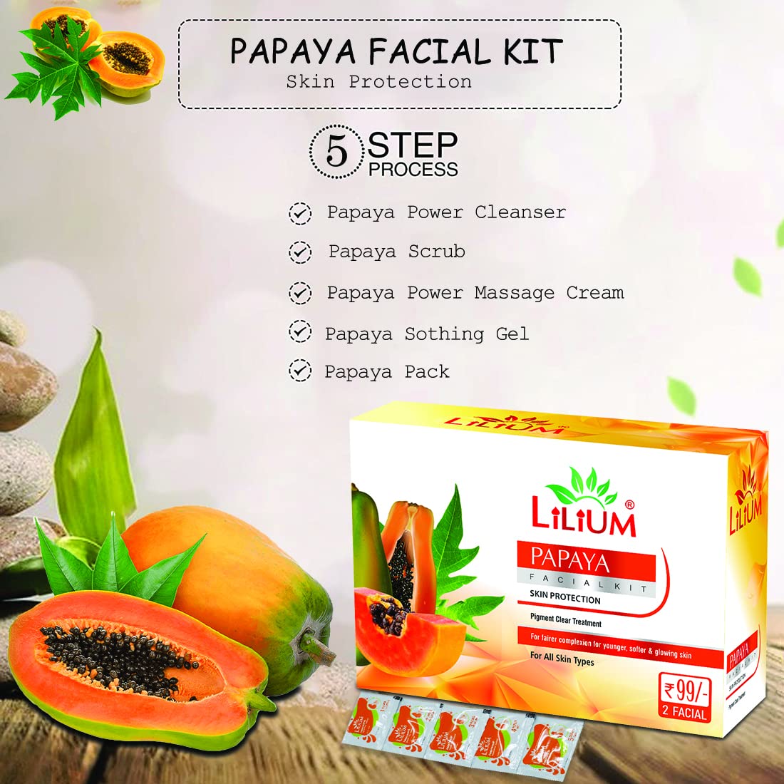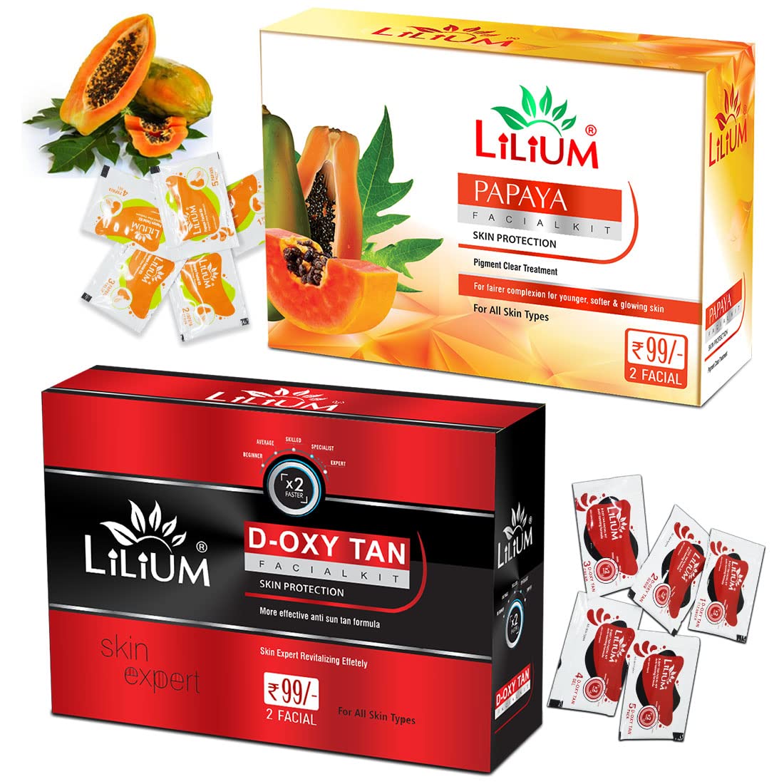 Lilium Papaya & diamond Facial Kit Pack of 2 For Fairer Complexion Glowing Skin & Nourishes The Skin 60g