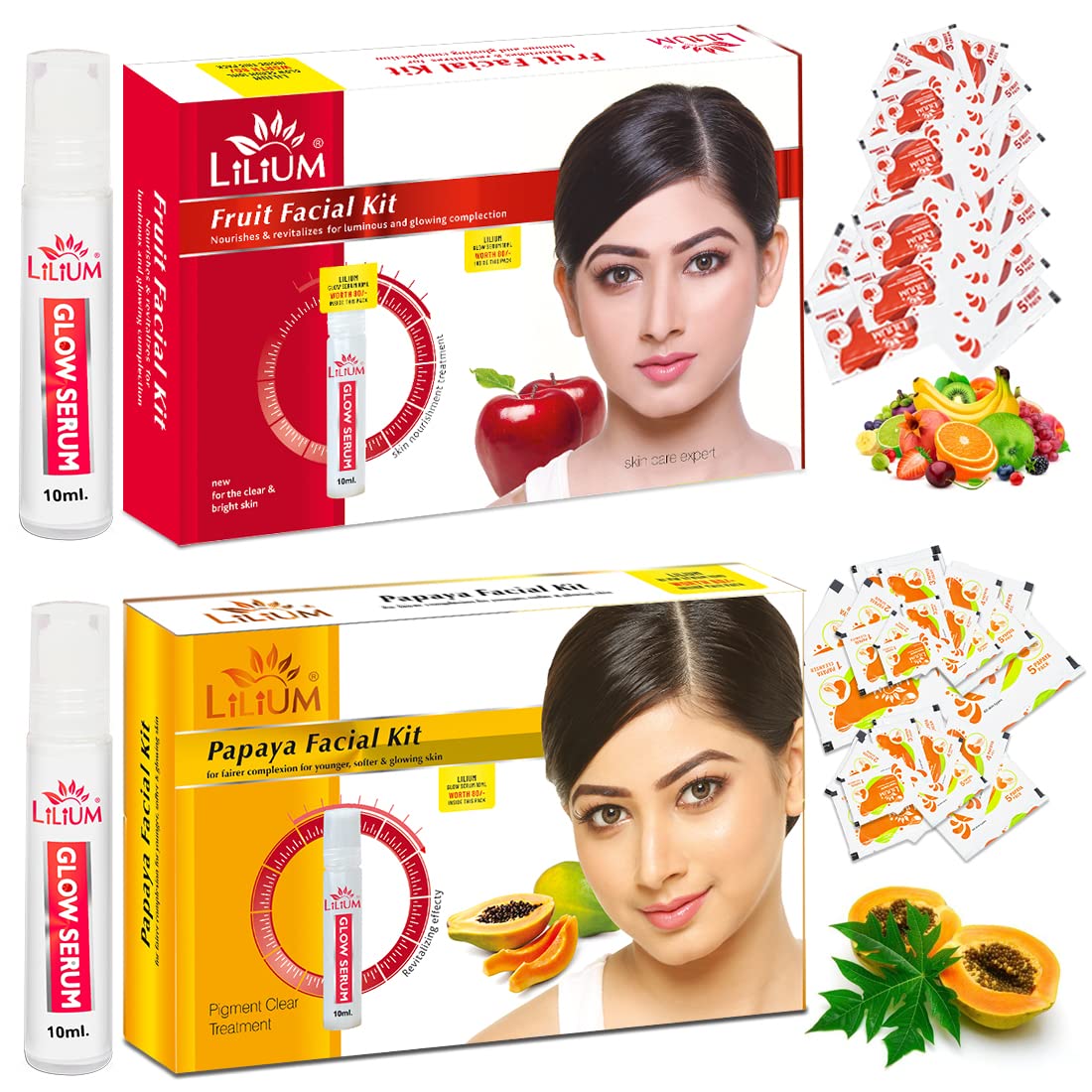 Lilium Papaya & Fruit Facial Kit Pack of 2 For Fairer Complexion Glowing Skin & Nourishes & Revitalizer 120g