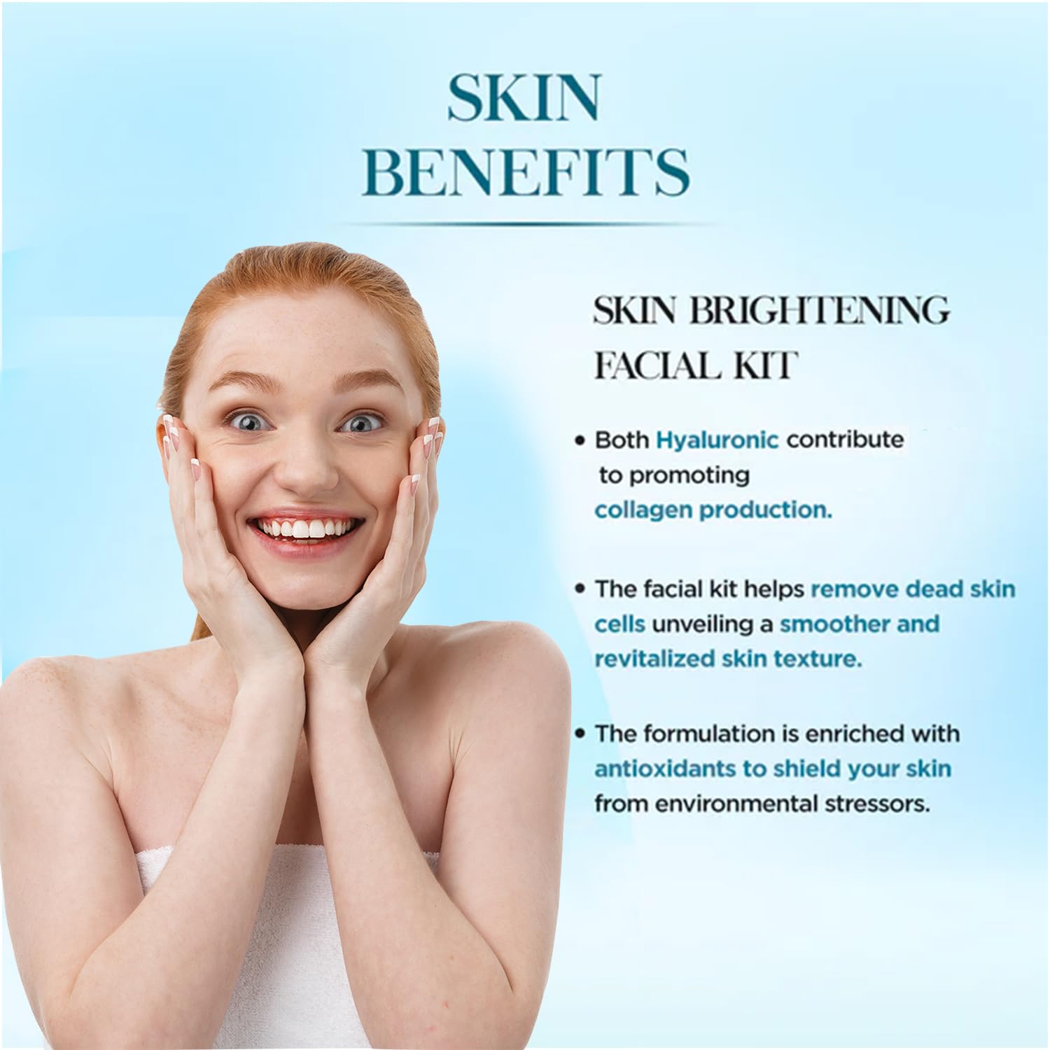 [DEEP HUDRATION & SKIN PLUMPING] Infused with hyaluronic this facial kit locks in moisture leaving skin soft supple and visibly plumper.