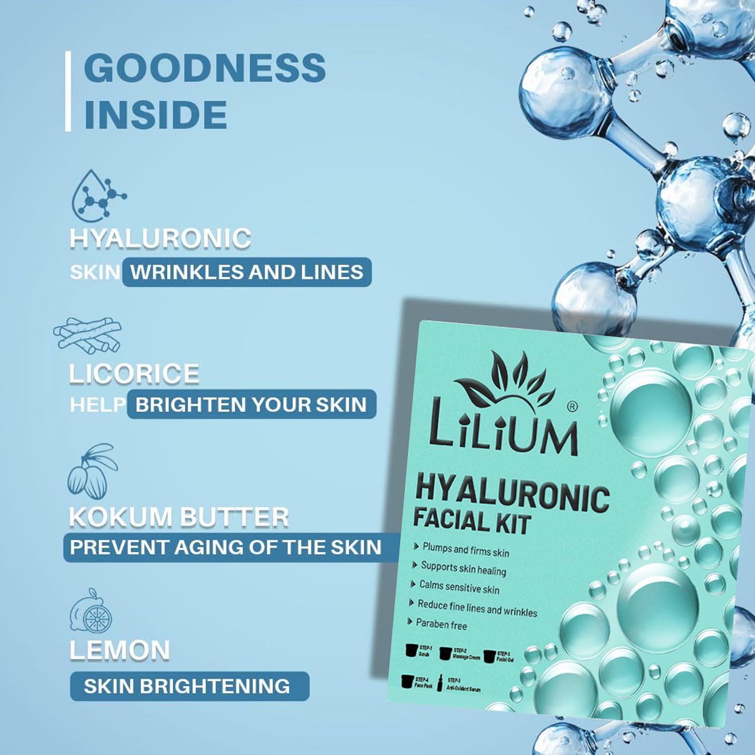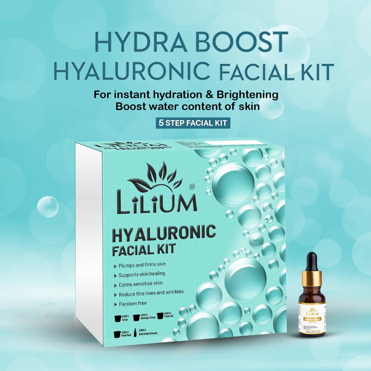 Lilium Premium Advanced Formula Hyaluronic Facial Kit 410g | Hydrating & Anti-Aging | Gives Glowing & Youthful Skin | Reduces Fine Lines & Wrinkles | Firms & Plumps Skin | All Skin Types
