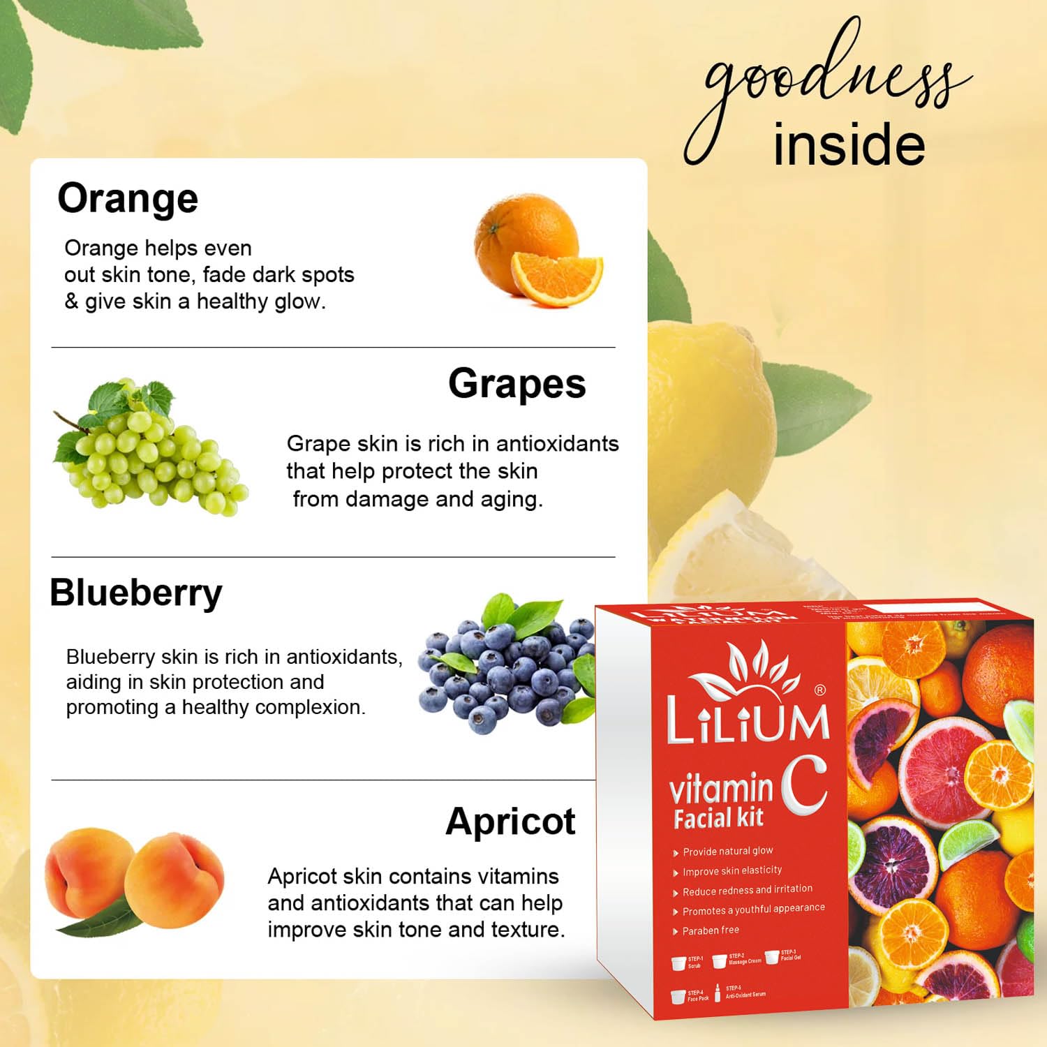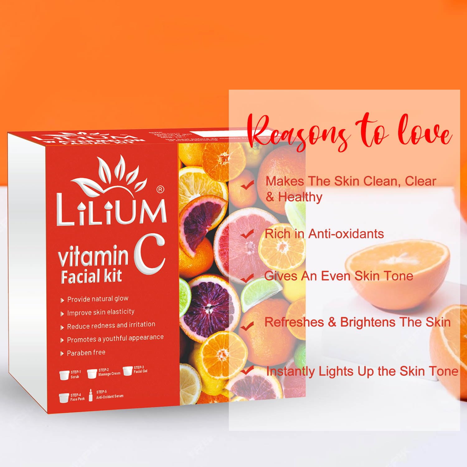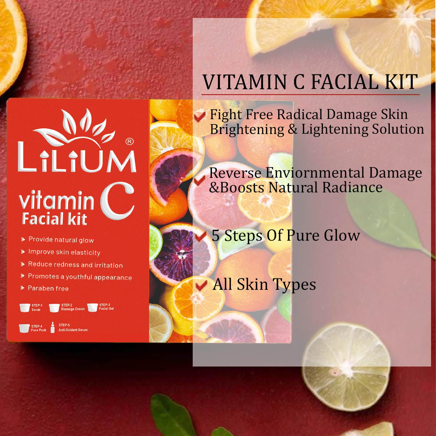 Lilium Premium Advanced Formula Vitamin C Facial Kit 410g | Anti-Acne & Dark Spot Removal | Skin Brightening & Blemish Control | Hydrating & Glowing Facial for Men & Women | All Skin Types