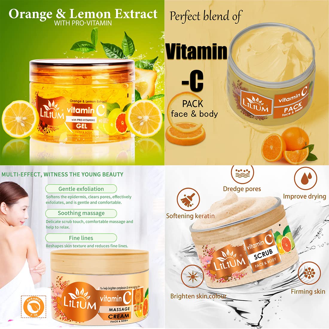 Lilium Vitamin C Facial Kit 1100g | Complete Skincare Set For Brighter Healthier & More Radiant Skin Tone | Radiant & Youthful Complexion | For Women & Men | 100% Vegan | All Skin Types