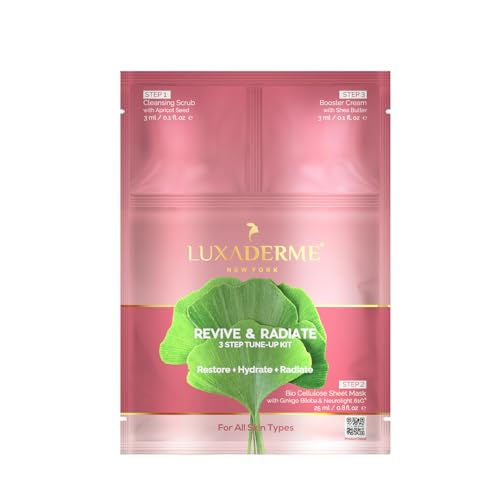 HYDRATING FACIAL KIT : The LuxaDerme Revive & Radiate 3-Step Facial Kit gives you the feel of a mini Korean facial from the comfort of your home. It hydrates brightens revitalizes and evens out your skin