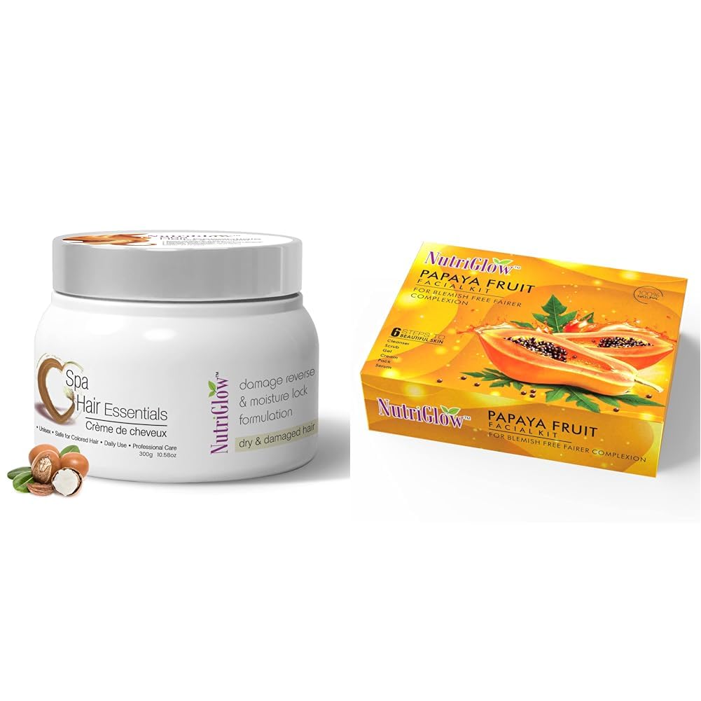NutriGlow Hair Spa Cream with Damage Reverse & Moisture Lock Formulation for Dry & Damaged Hair - 300g & Papaya Fruit Facial Kit for Men Women for Glowing Skin (260 Gram - 10 ml)