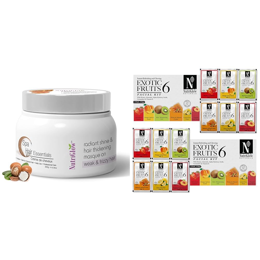 NutriGlow Hair Spa Cream With Volumizing & Shine Lock Formula For Weak & Frizzy Hair 300g & Natural's Exotic Fruit Facial Kit with Honey Vitamin E for Radiant GlowPack of 2 (60 Gm Each)