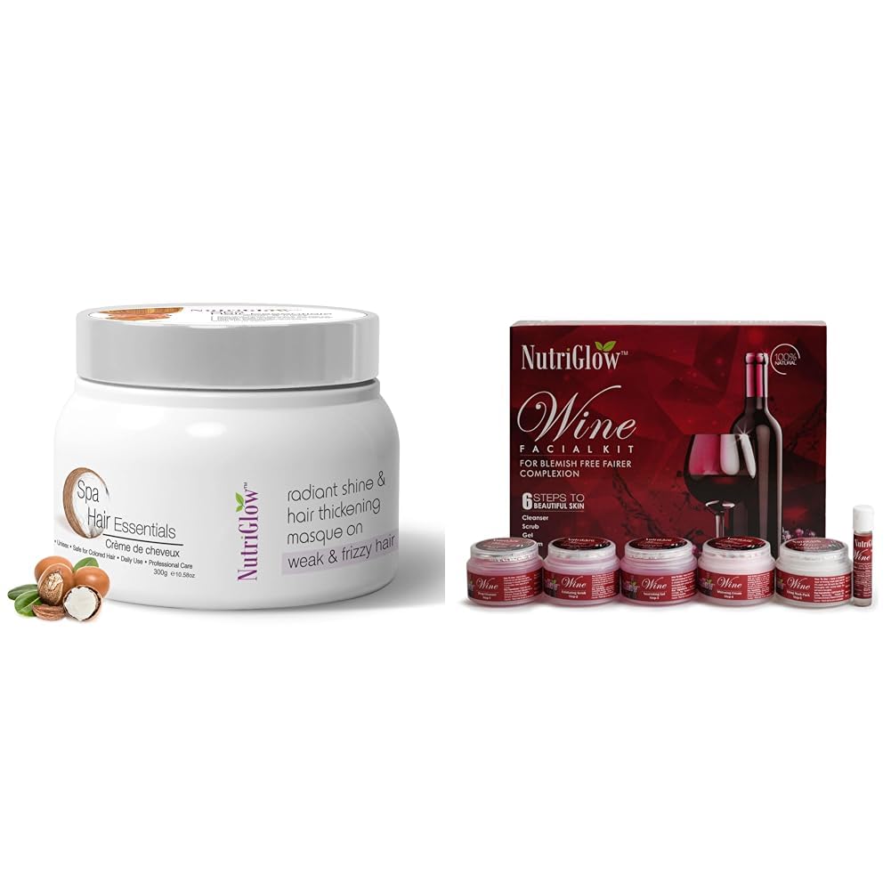 NutriGlow Hair Spa Cream With Volumizing & Shine Lock Formula For Weak & Frizzy Hair 300g & Wine Facial Kit For Radiant Glow All Skin Types- 250g+10ml
