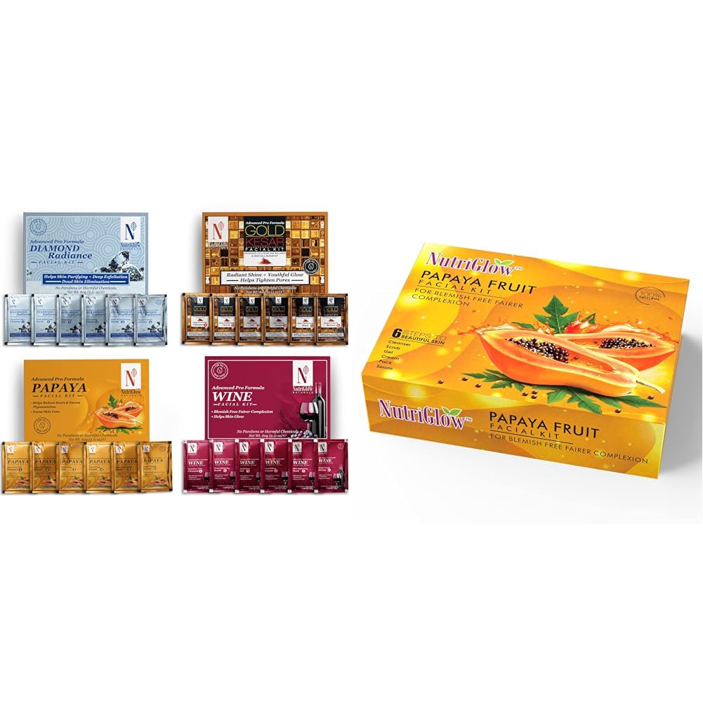 HomeBeautyFace CareFacial KitsNutriGlow NATURAL'S Advanced Pro Formula Cleanup Kit All Type of Skin Solution for men & women 60 gm (Pack of 4) & Papaya Fruit Facial Kit for Men Women for Glowing Skin (260 Gram - 10 ml)