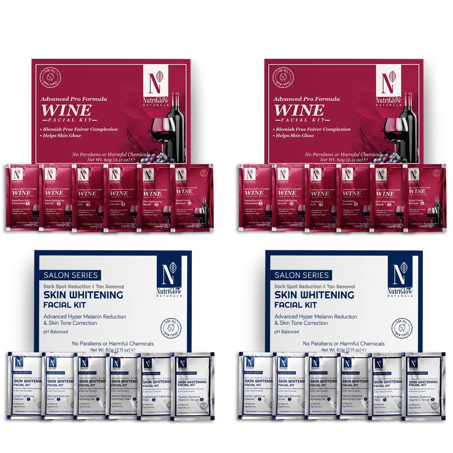 NutriGlow NATURAL'S Advanced Pro Formula Wine Facial Kit & Skin Whitening Facial Kit For Makes you Look Young Eliminates Visible Signs Ageing & Makes Skin Moisturize 60gm Each Pack of 4
