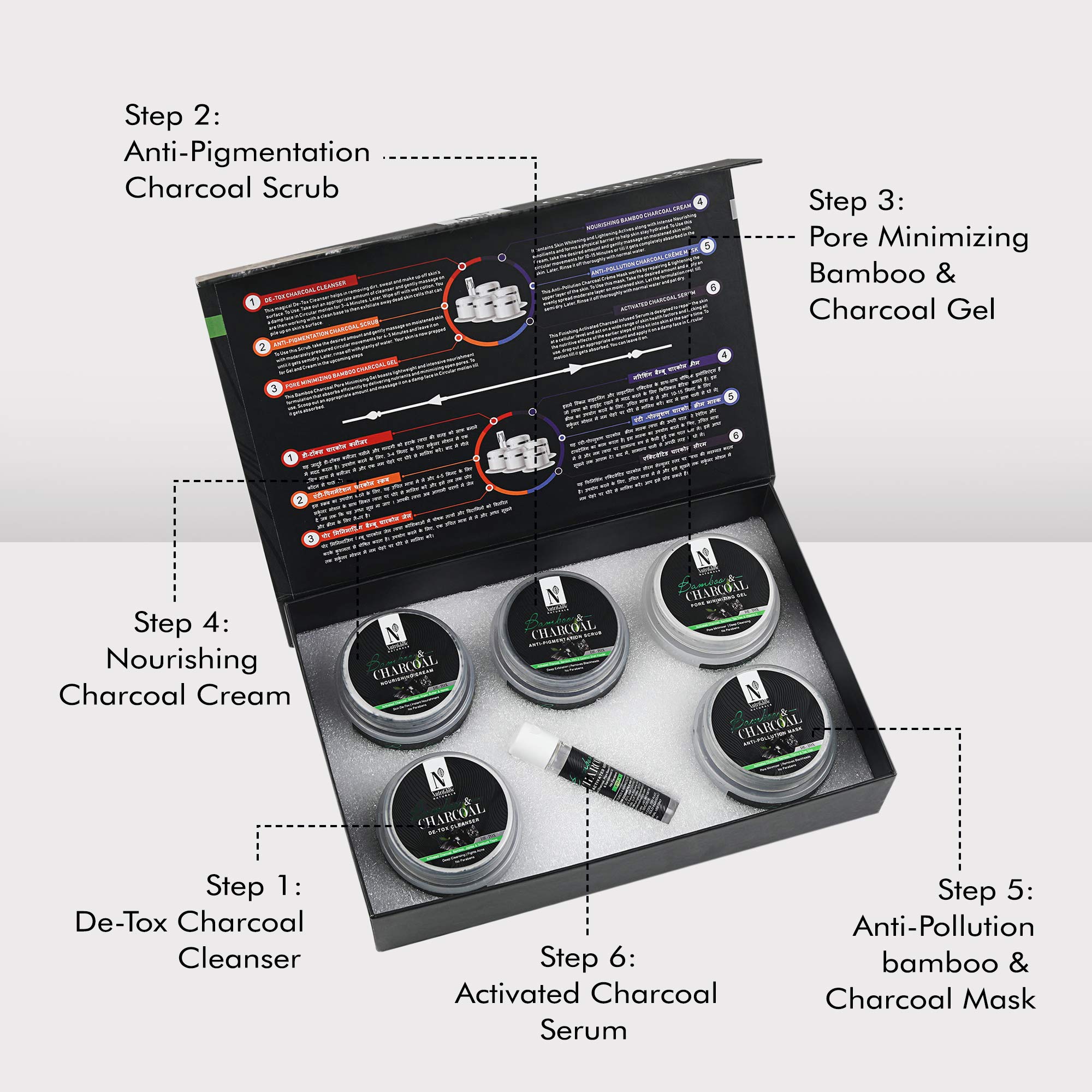NUTRIGLOW Natural's Bamboo & Activated Charcoal Facial Kit For Brighter Skin, Deep Pore Cleansing Acne Prone Oily Skin & Blackheads Removal, All Skin types (8.8 Oz + 0.3 Fl Oz)