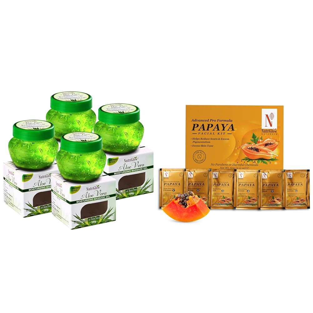 NutriGlowAloe Vera Gel for Face Hair 100 gm Each Pack of 4NATURAL'S Advanced Pro Formula Papaya Facial Kit for Glowing Skin Cleanup Kit for Even Skin Tone 60gm