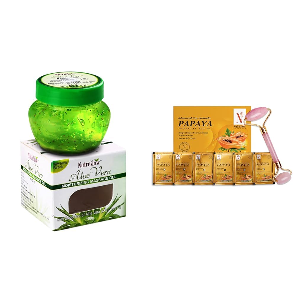 HomeBeautyFace CareFacial KitsNutriGlowAloe Vera Gel Great for Face Hair 100gmNATURAL'S Papaya Facial Kit For Blemish Free and Fairer Skin 60gm With Jade Roller