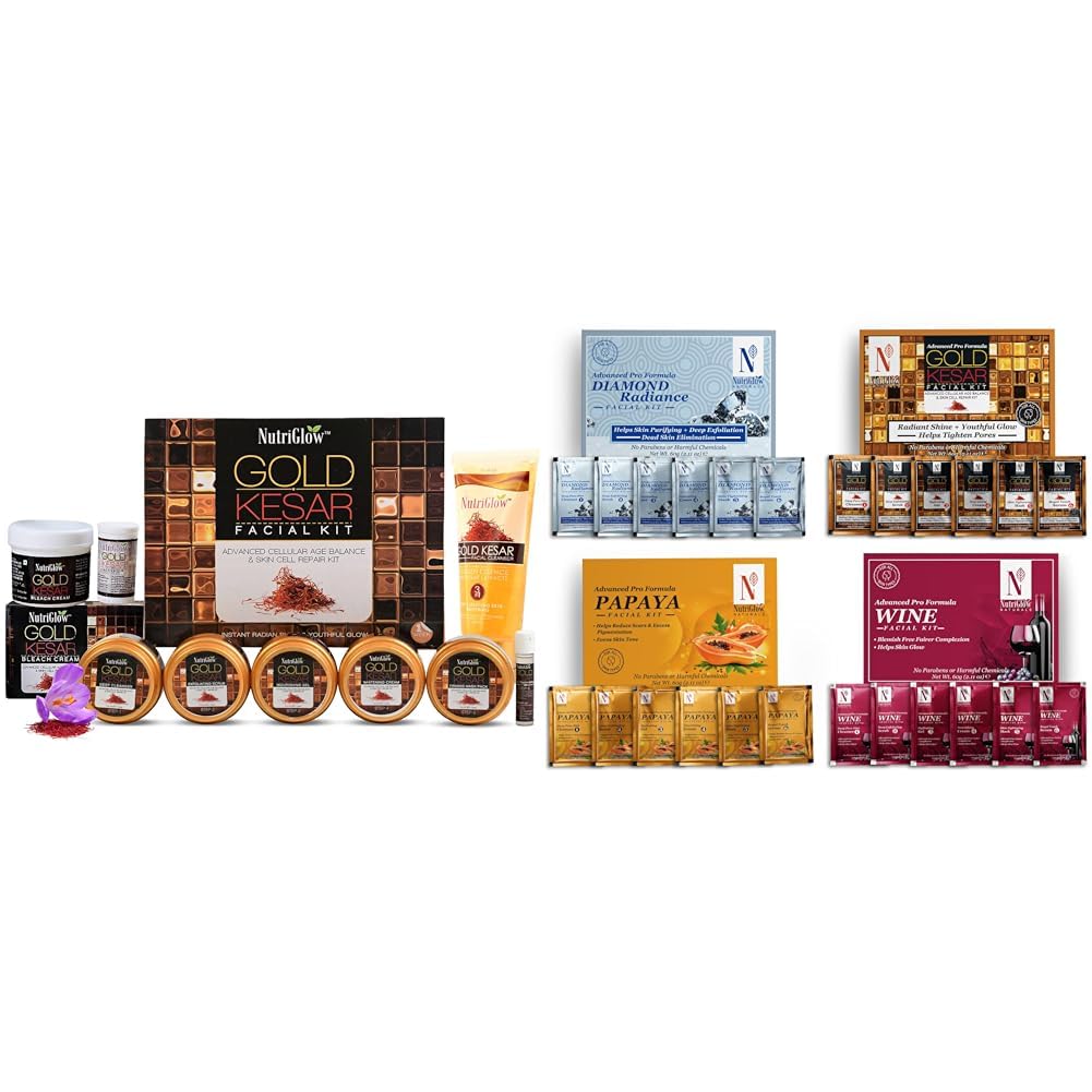NutriGlowGold Kesar Facial Kit (250gm + 10ml) with Bleach Cream (43gm) & Face Wash (65ml)NATURAL'S Advanced Pro Formula Cleanup Kit All Type of Skin Solution for men & women 60 gm (Pack of 4)
