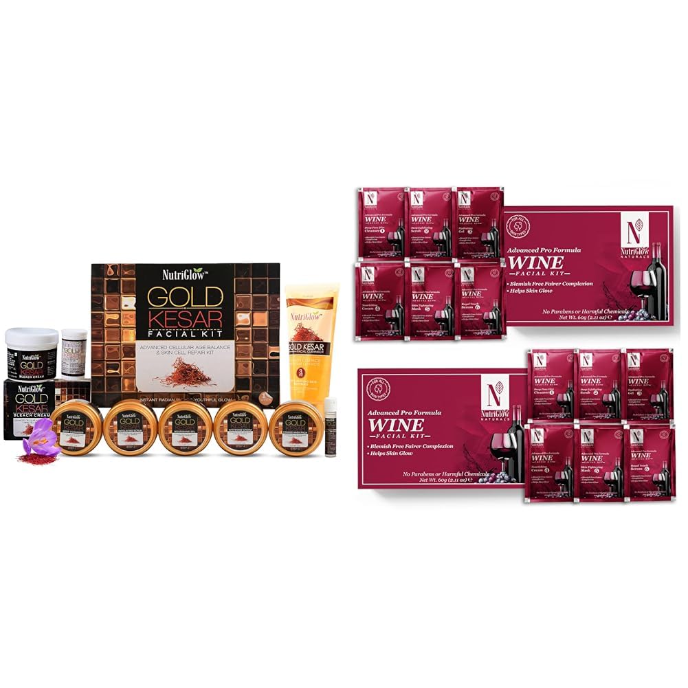 NutriGlowGold Kesar Facial Kit (250gm + 10ml) with Bleach Cream (43gm) & Face Wash (65ml)NATURAL'S Advanced Pro Formula Wine Facial Kit Pack of 2