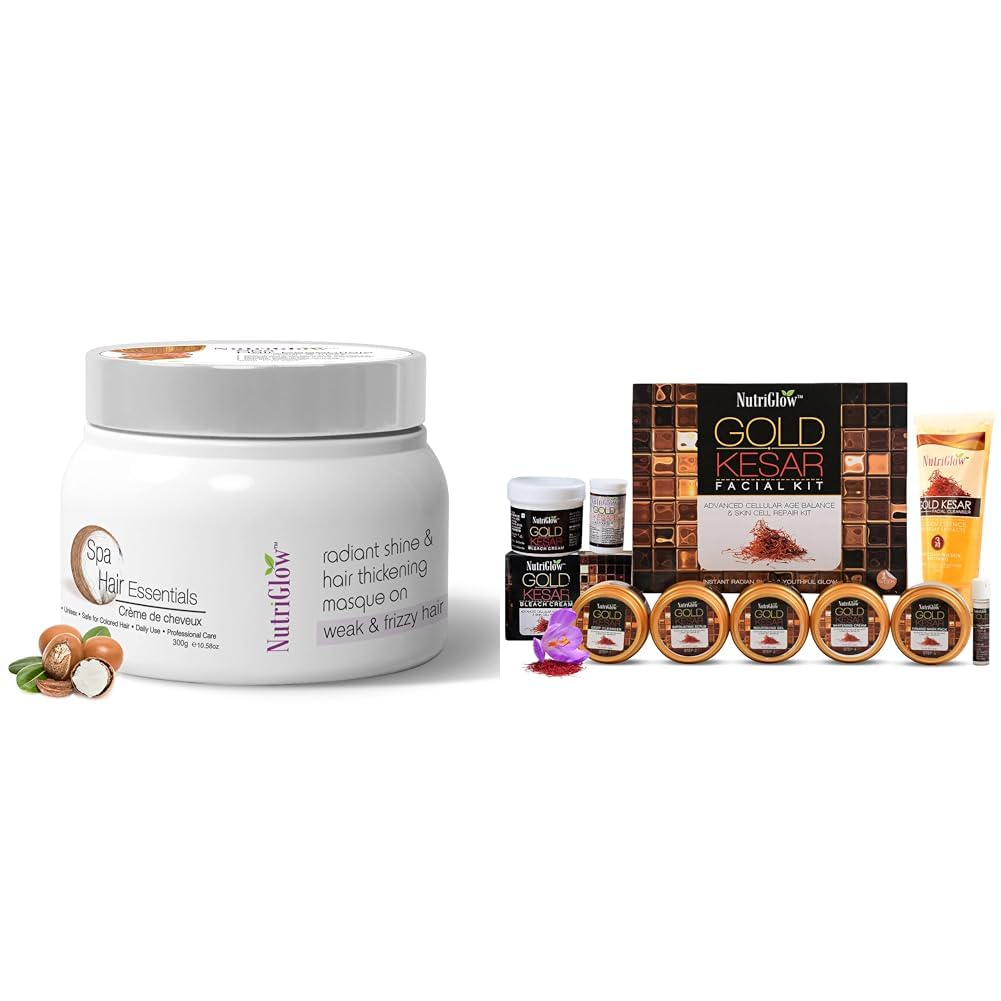 NutriGlowHair Spa Cream With Volumizing & Shine Lock Formula For Weak & Frizzy Hair 300gGold Kesar Facial Kit (250gm + 10ml) with Bleach Cream (43gm) & Face Wash (65ml) All Skin Types (Pack Of 3)