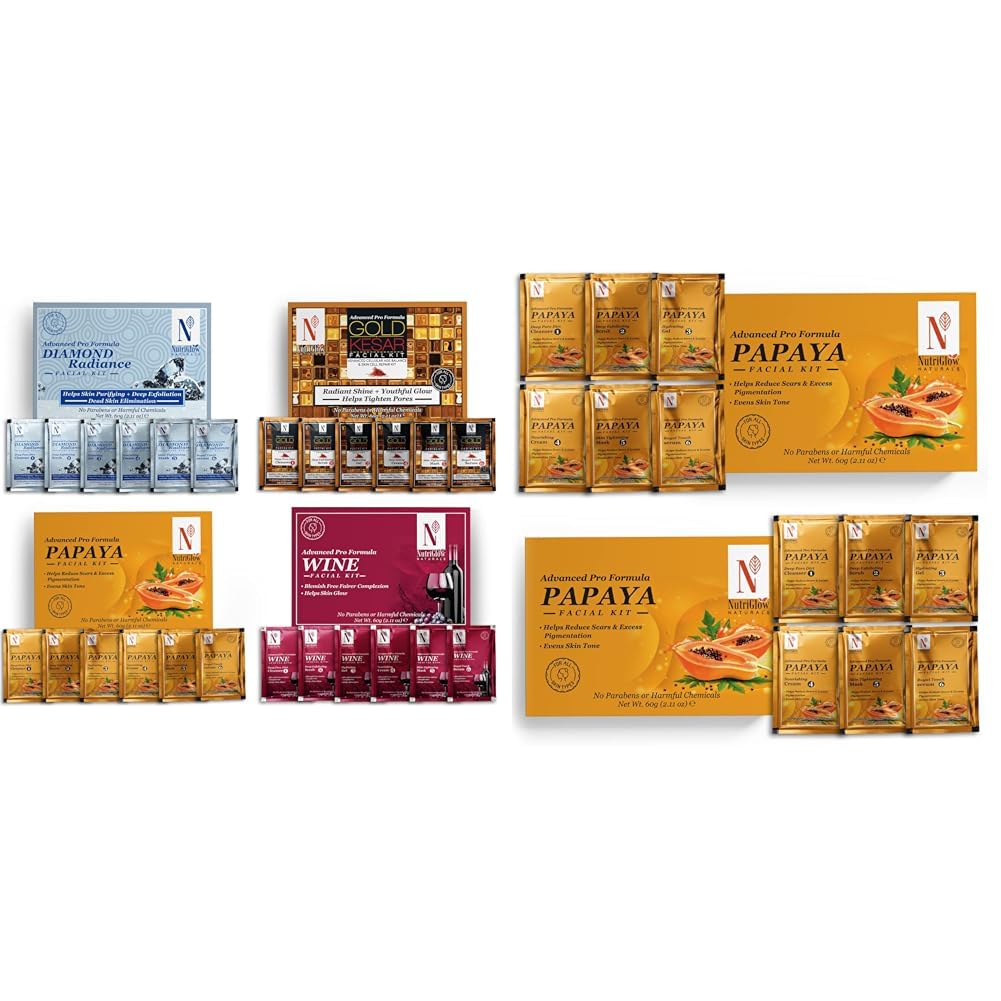 NutriGlowNATURAL'S Advanced Pro Formula Cleanup Kit 60 gm (Pack of 4) NATURAL'S Advanced Pro Formula Papaya Facial Kit For Glowing Skin - 10gmx6 Each Pack of 2