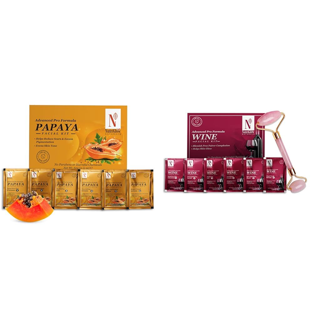 NutriGlowNATURAL'S Advanced Pro Formula Papaya Facial Kit 60gmNATURAL'S Advanced Pro Formula Wine Facial Cleanup Kit for Glowing Skin 60gm with Jade Roller