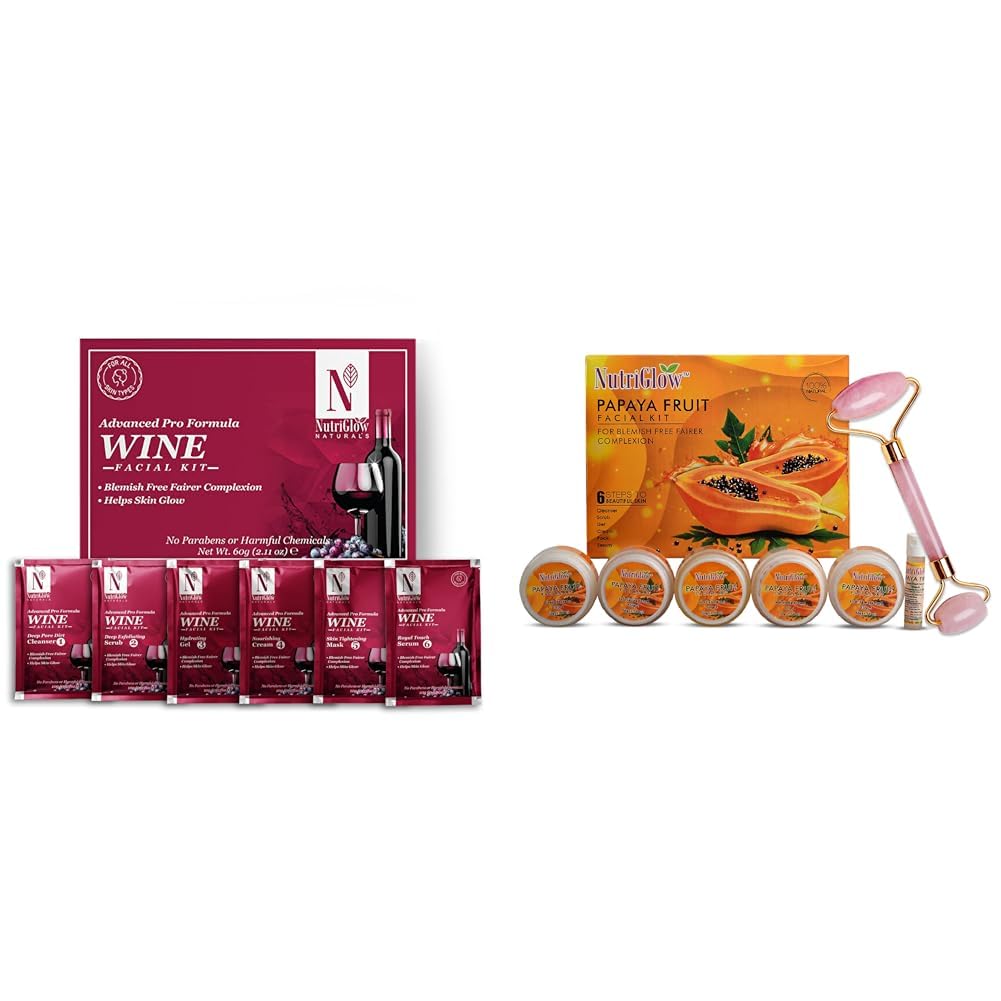 NutriGlowNATURAL'S Advanced Pro Formula Wine Facial Cleanup Kit 60 GMPapaya Facial Kit For Blemish Free and Fairer Skin Hydrated & Brightening Fresh Looking Skin 250gm+10ml With Jade Roller