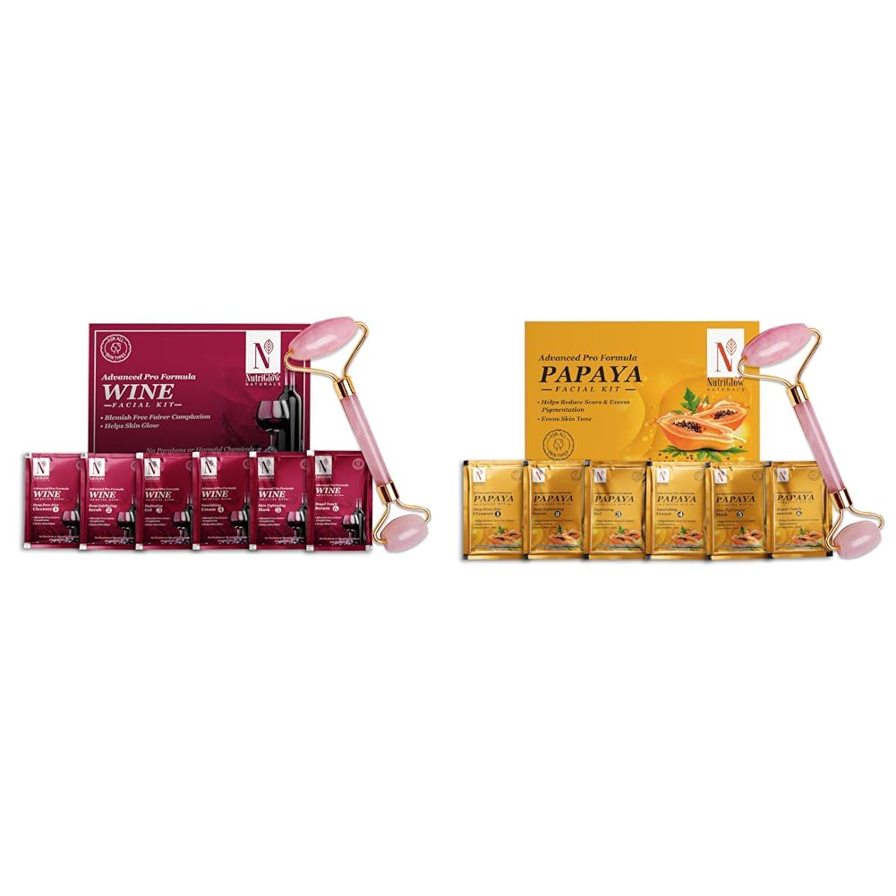 NutriGlowNATURAL'S Advanced Pro Formula Wine Facial Cleanup Kit with Jade RollerNATURAL'S Papaya Facial Kit For Blemish Free and Fairer Skin 60gm With Jade Roller