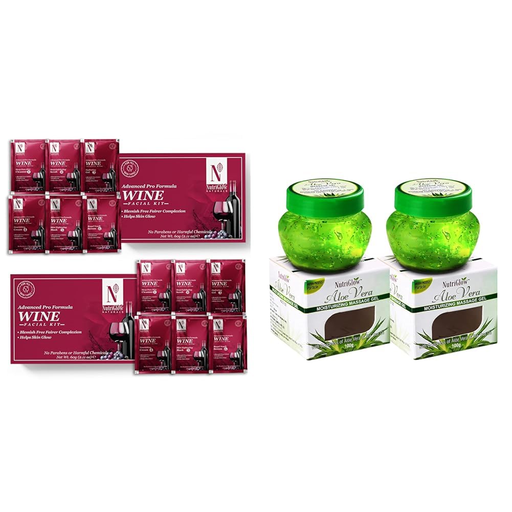 NutriGlowNATURAL'S Advanced Pro Formula Wine Facial Kit Pack of 2Aloe Vera Gel Great for Face Hair 100gm Each Pack of 2