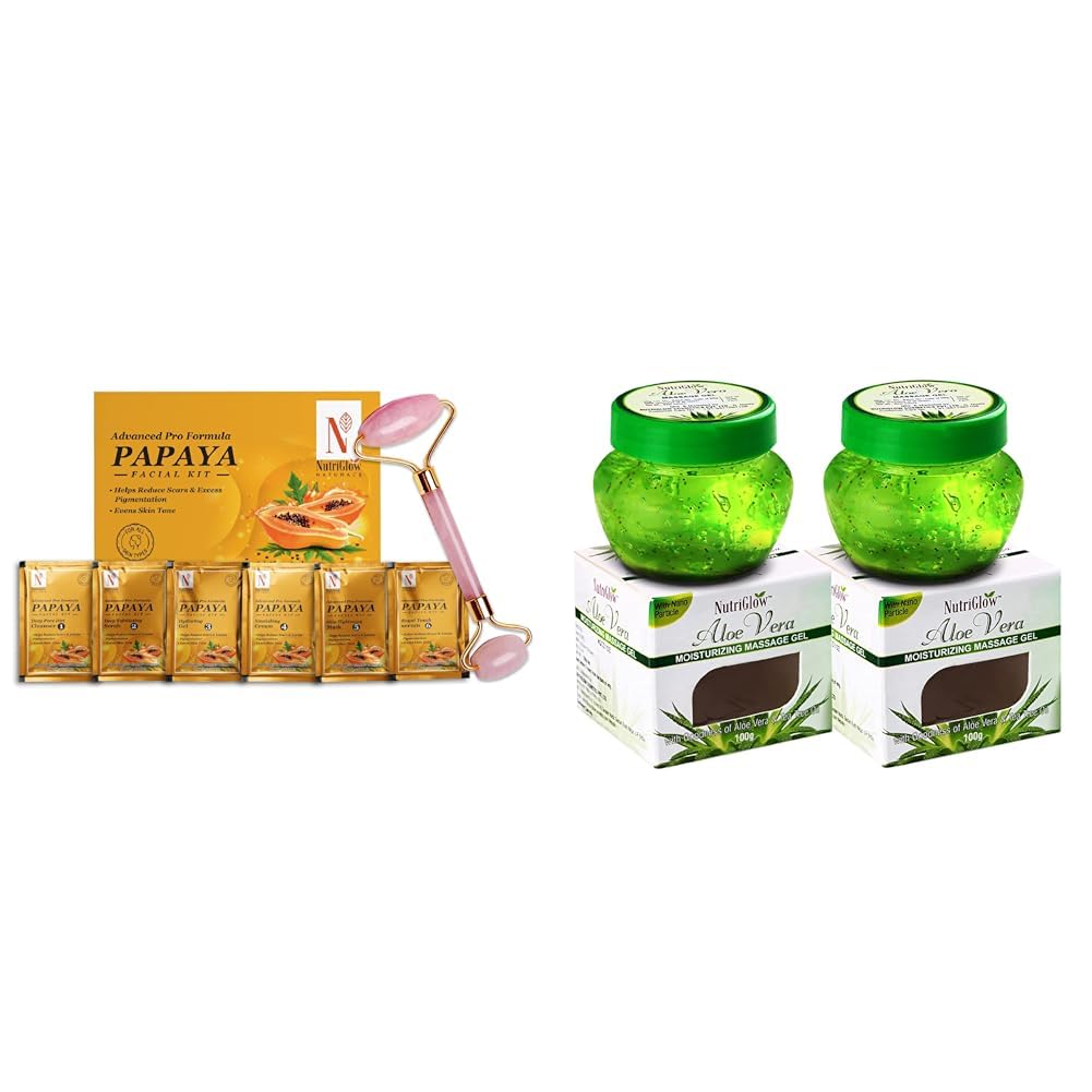 NutriGlowNATURAL'S Papaya Facial Kit With Jade RollerAloe Vera Gel Great for Face Hair 100gm Each Pack of 2