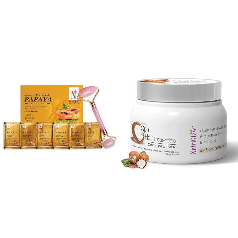 NutriGlowNATURAL'S Papaya Facial Kit With Jade RollerHair Spa Cream with Damage Reverse & Moisture Lock Formulation for Dry & Damaged Hair - 300g