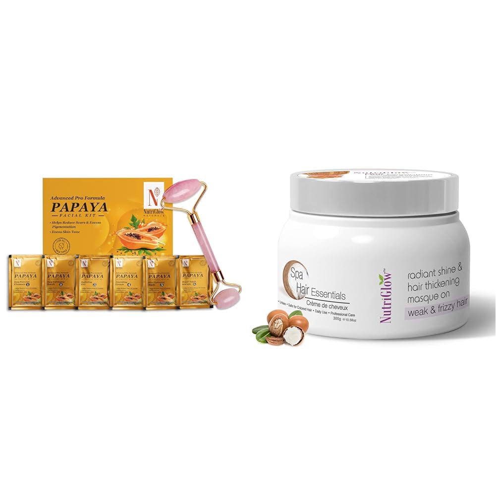 NutriGlowNATURAL'S Papaya Facial Kit With Jade RollerHair Spa Cream With Volumizing & Shine Lock Formula For Weak & Frizzy Hair 300g