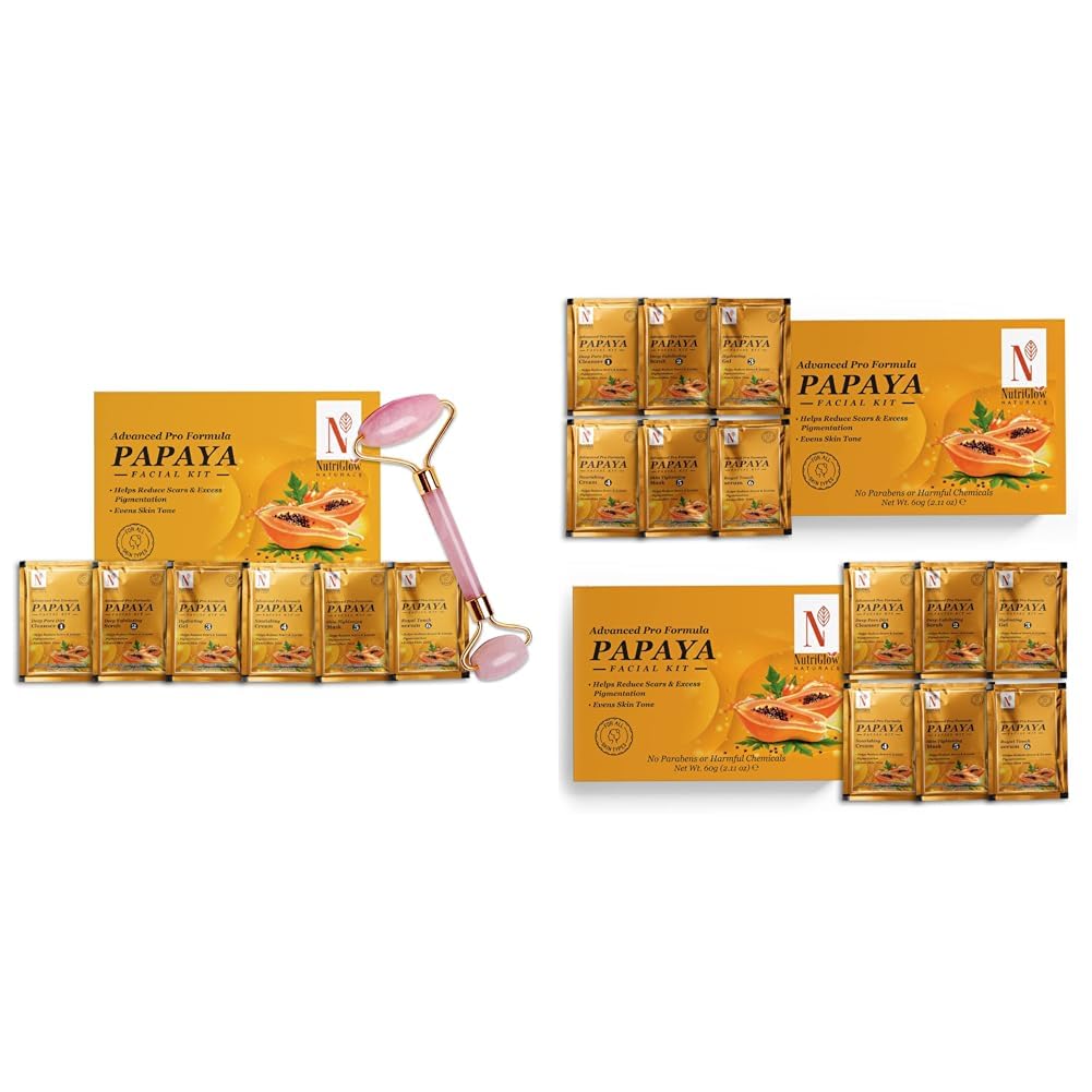 HomeBeautyFace CareFacial KitsNutriGlowNATURAL'S Papaya Facial Kit With Jade RollerNATURAL'S Advanced Pro Formula Papaya Facial Kit For Glowing Skin - 10gmx6 Each Pack of 2