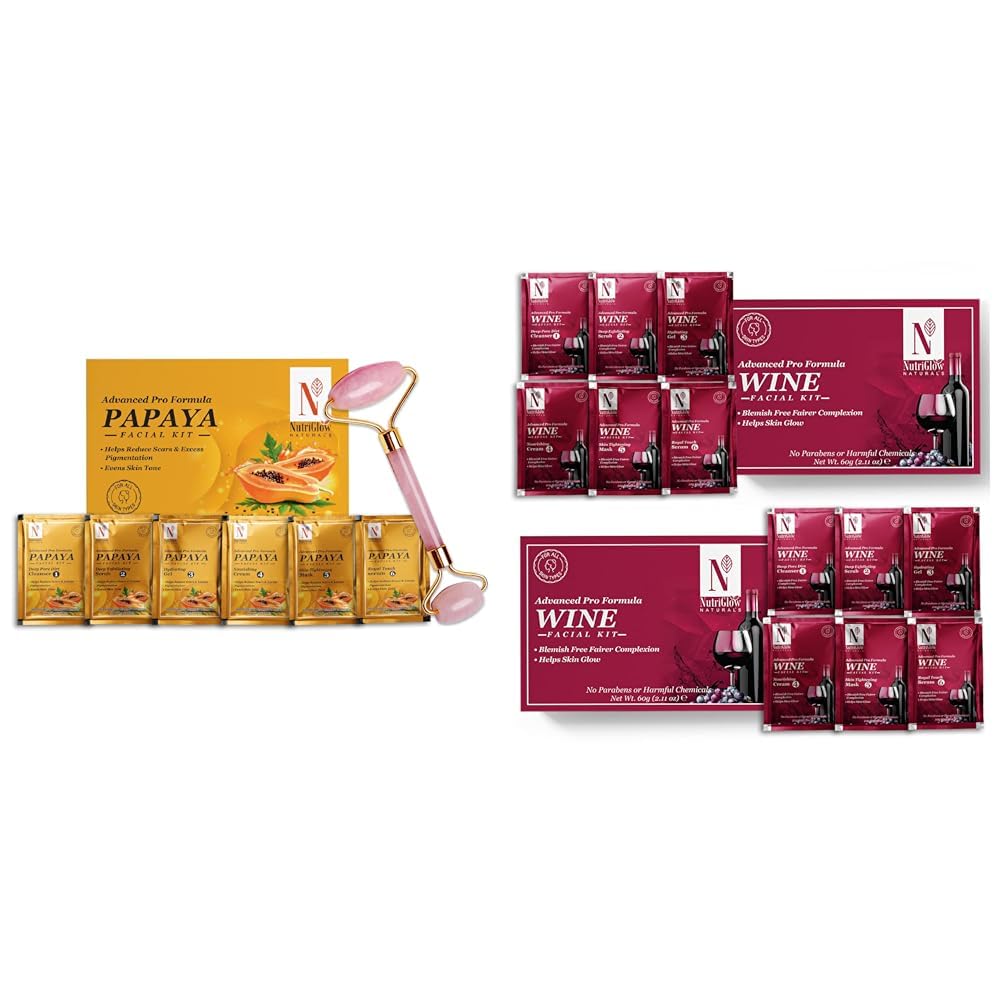 NutriGlowNATURAL'S Papaya Facial Kit With Jade RollerNATURAL'S Advanced Pro Formula Wine Facial Cleanup Kit 60 gm ( Pack of 2 )