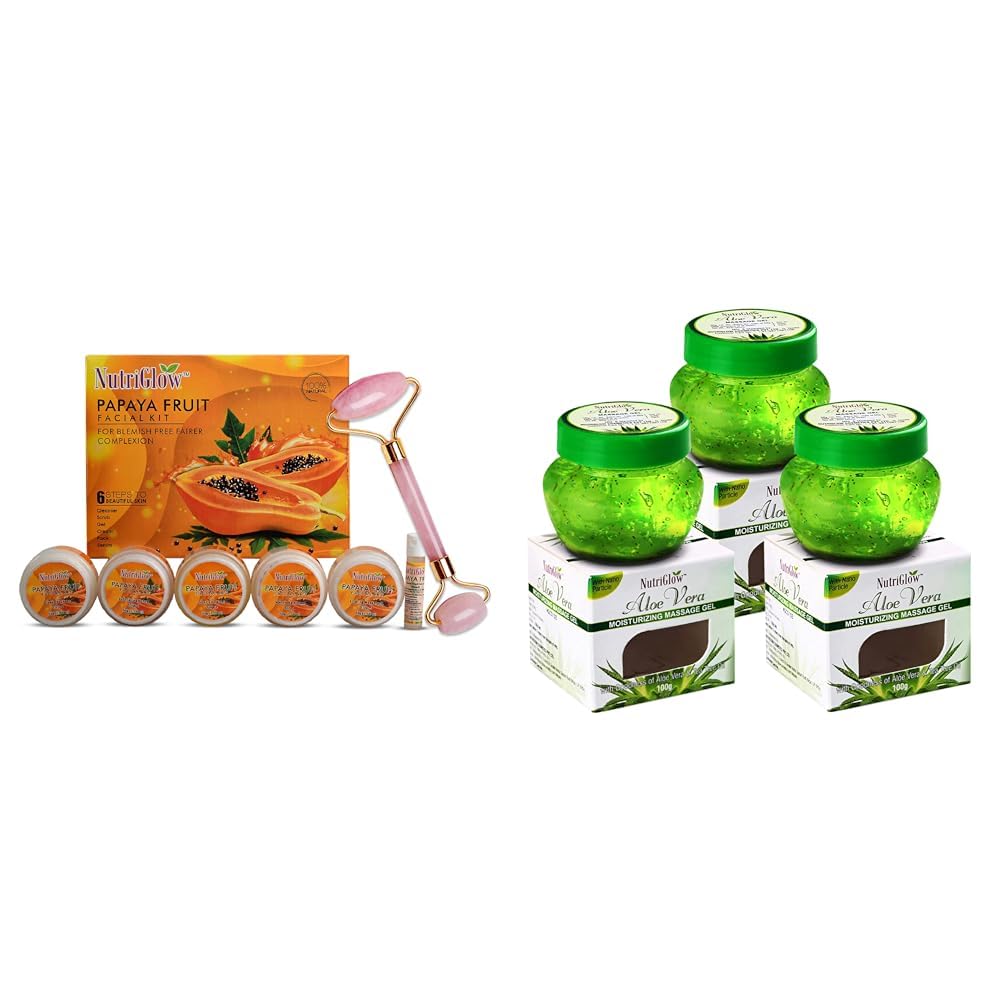 NutriGlowPapaya Facial Kit For Blemish Free and Fairer Skin Hydrated & Brightening Fresh Looking Skin With Jade RollerAloe Vera Gel Great For Face Hair 100gm Each Pack of 3