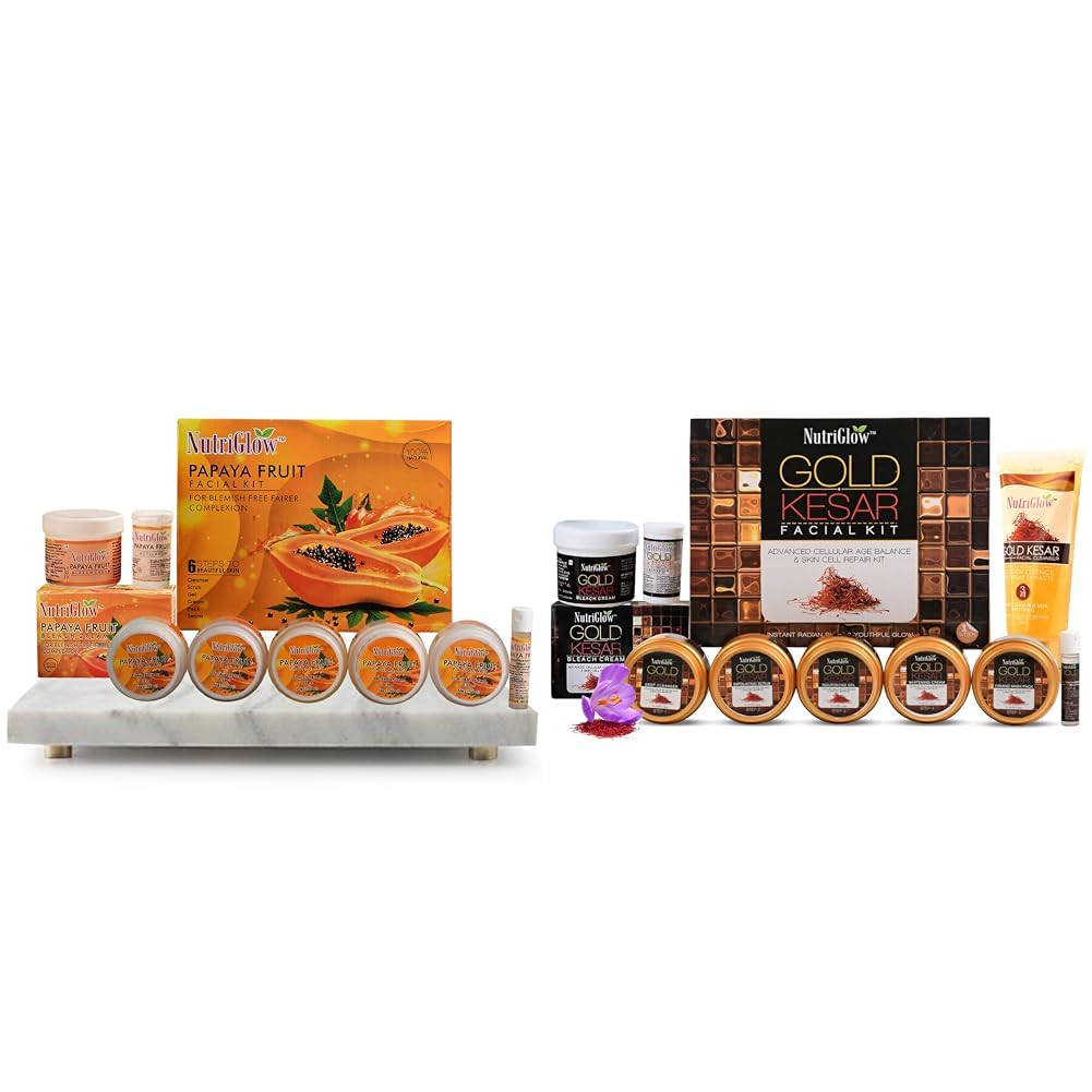 NutriGlowPapaya Fruit Facial Kit(250gm + 10ml) & Papaya Fruit Beach Cream(43gm)Gold Kesar Facial Kit (250gm + 10ml) with Bleach Cream (43gm) & Face Wash (65ml) All Skin Types (Pack Of 3)