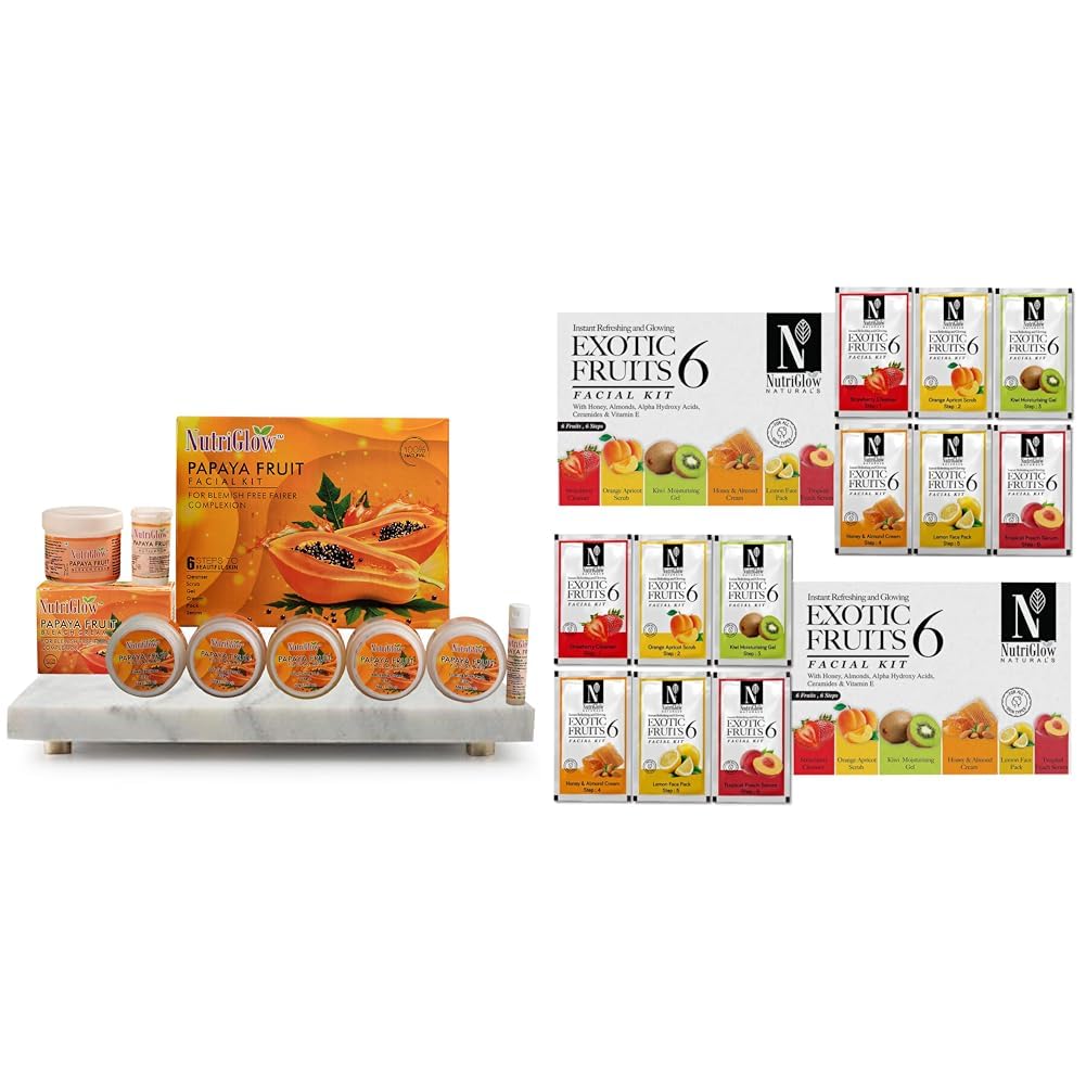 NutriGlowPapaya Fruit Facial Kit(250gm + 10ml) & Papaya Fruit Beach Cream(43gm)Natural's Exotic Fruit Facial Kit with Honey Vitamin E for Radiant GlowPack of 2 (60 Gm Each)