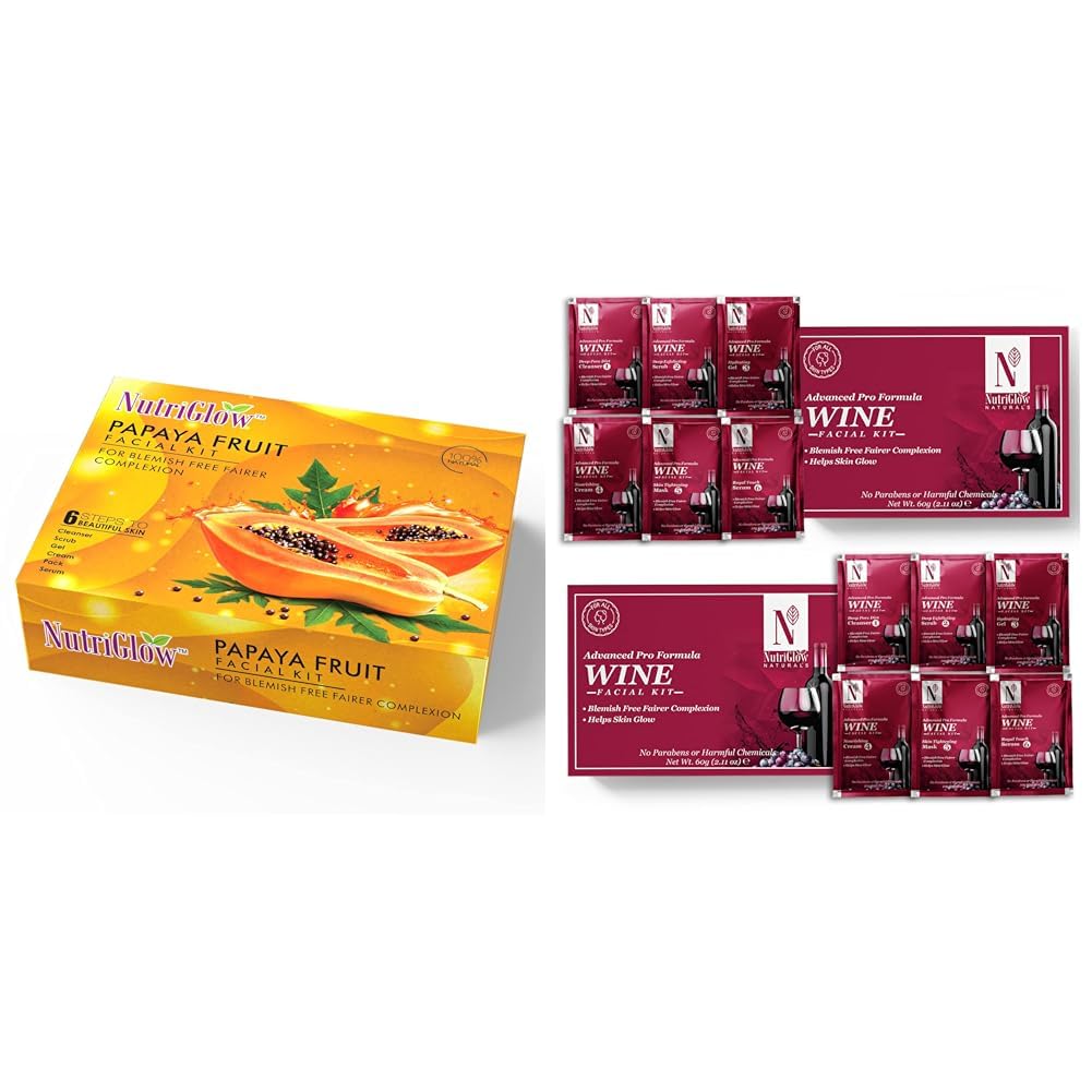 NutriGlowPapaya Fruit Facial Kit for Glowing Skin (260 Gram - 10 ml)NATURAL'S Advanced Pro Formula Wine Facial Cleanup Kit 60 gm ( Pack of 2 )