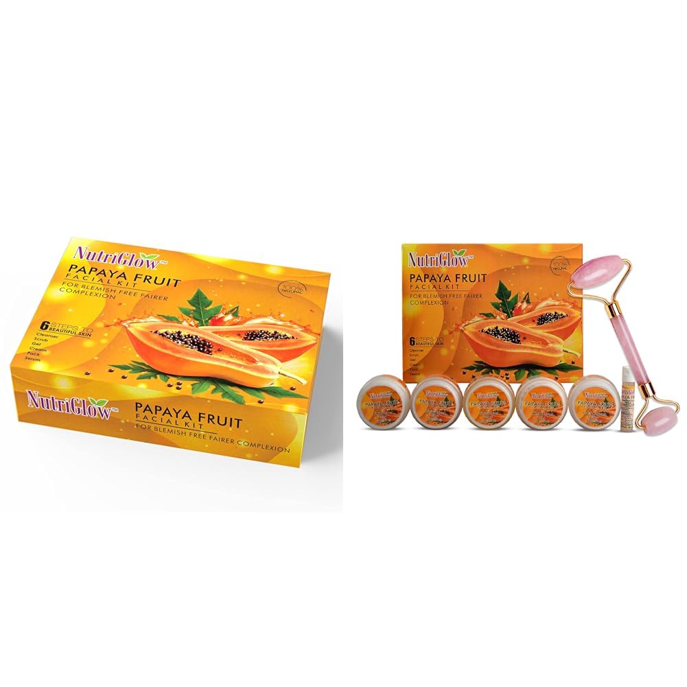 NutriGlowPapaya Fruit Facial Kit for Glowing Skin (260 Gram - 10 ml)Papaya Facial Kit For Blemish Free and Fairer Skin Hydrated & Brightening Fresh Looking Skin 250gm+10ml With Jade Roller