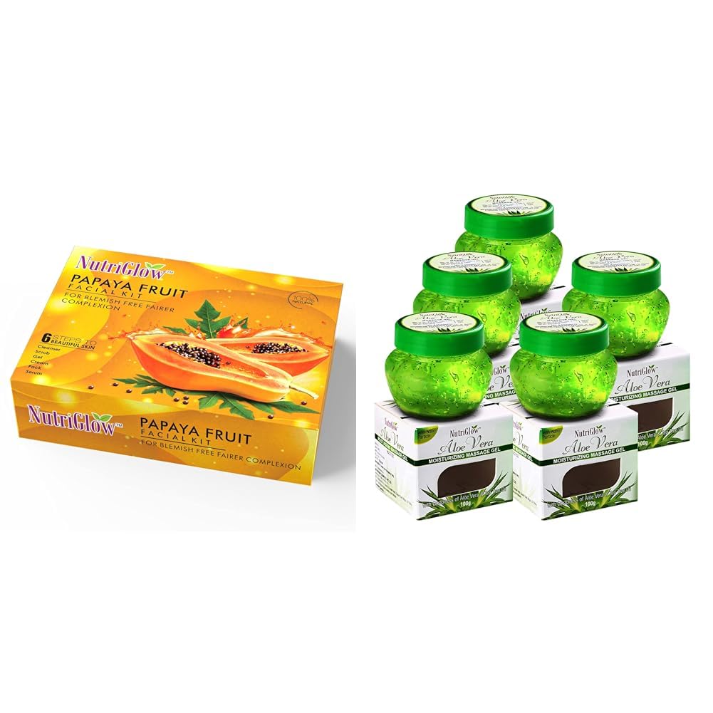NutriGlowPapaya Fruit Facial KitAloe Vera Gel Great for Face Hair 100gm Each Pack of 5