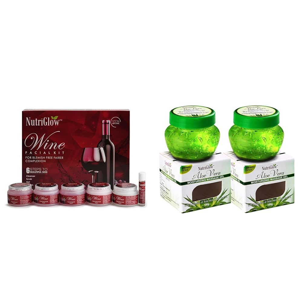 NutriGlowWine Facial Kit For Radiant Glow- 250g+10mlAloe Vera Gel Great for Face Hair 100gm Each Pack of 2