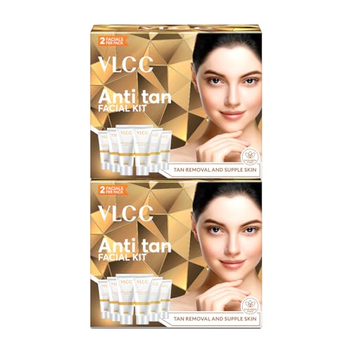 VLCC Anti Tan Facial Kit - 60g X 2 (Pack of 2) | Power of 25 Vital Ingredients | Fights Sun Tan, Dark Spots, and Sun Spots | Even Nourishes and Protects Skin from UV Rays.