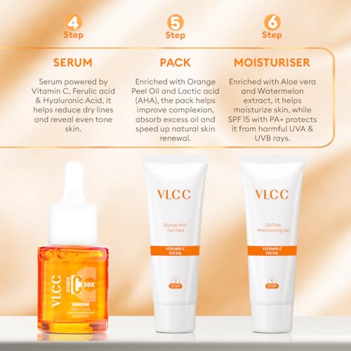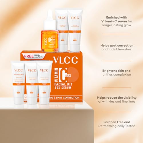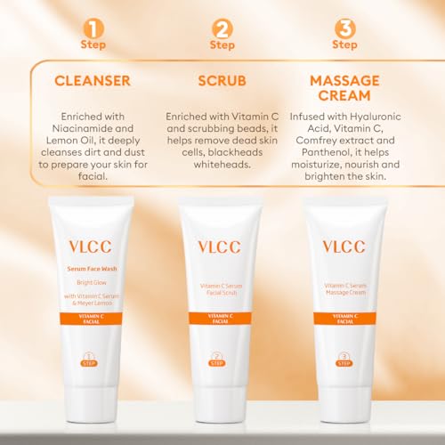 VLCC Vitamin C Serum Facial Kit - 135g | Skin Brightening Facial Kit | Skin Brightening Facial at Home | Fades Spots and Dullness | Vitamin C, Hyaluronic Acid & Ferulic Acid